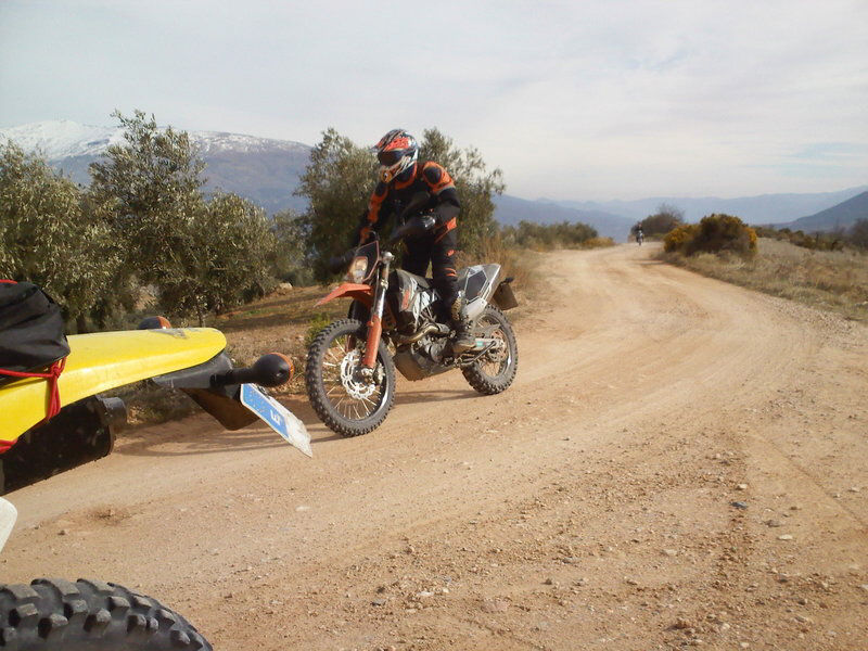 Die LC4s kommen überall durch, wo auch die EXC durchkommt, wenn auch nicht so leichtfüßig. Bei Anfahrten z. B. 140 km zum Treffen mit den span. Endurofahrern nach Granada, konnte wegen Rücksicht auf den EXC-Motor nur bis max 120 km/h auf Dauer auf der Schnellstrasse gefahren werden. War natürlich kein Problem in dieser Landschaft.