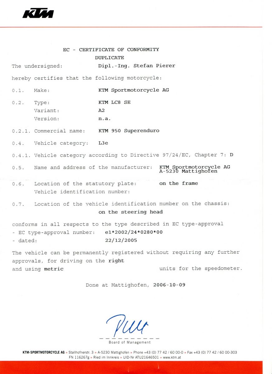 Anmeldungsdatum: 13.09.2006 Beiträge insgesamt: 977 Alter: 55 KTM LC8 SE 950, 2006 → 18.000 km Kreidler Florett (3 Gang Handschaltung)