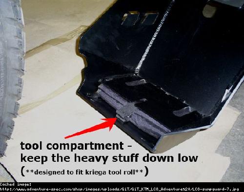 Quelle: http://www.adventure-spec.com/shop/ktm-lc8-950-990-adventure-s-r-sump-guard-bash-plate-skid-glide-plate-engine-guard-tool-case-off-road-adventure-enduro-dakar-rally-rallye-touratech-black-dog-african-queens/prod_148.html