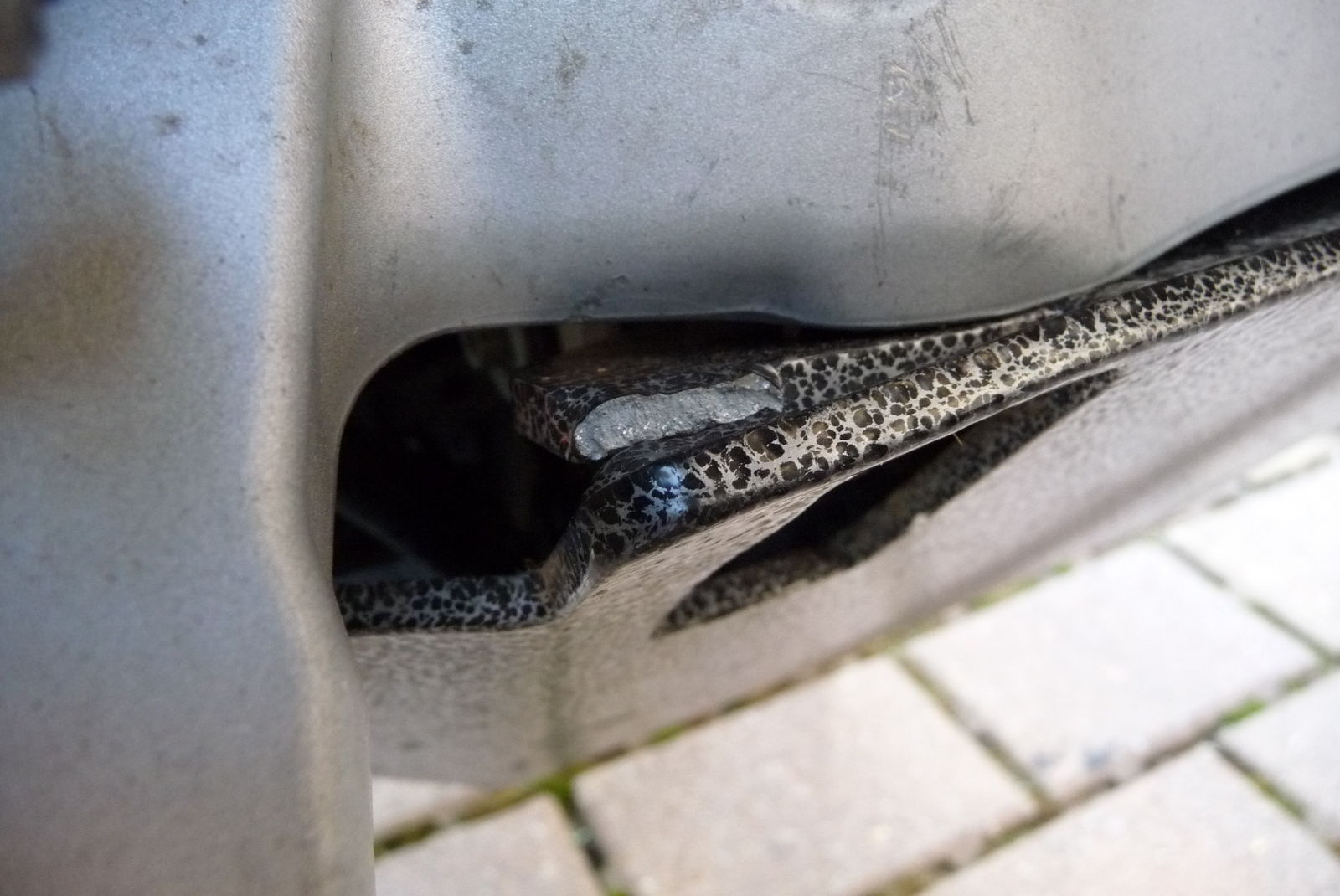 Leider hat der gut versteckte Stein beim Scheffy-Training in Verbindung mit meinem sehr weich eingestellten Fahrwerk einen ziemlichen Schlag getan.