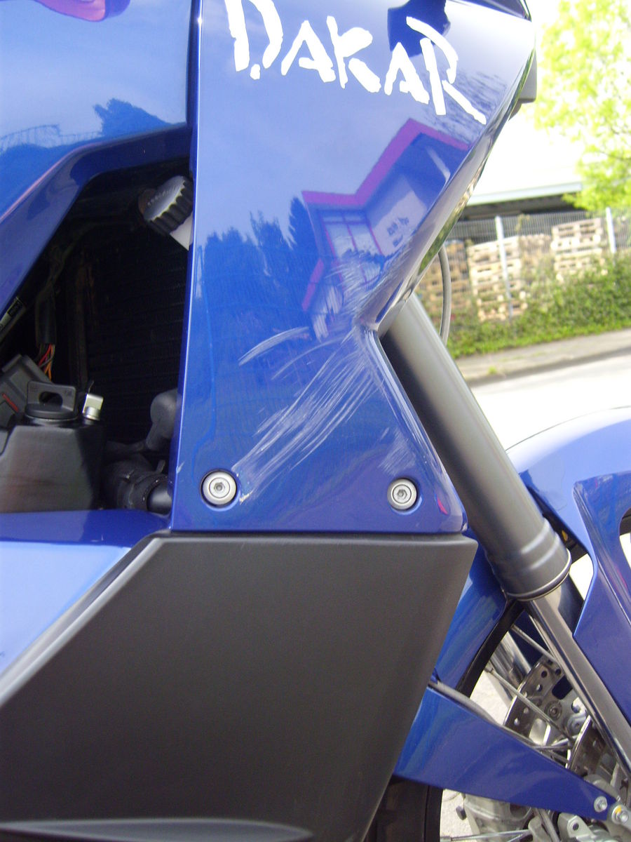 Zur Wiedererkennung: Kratzer an rechter Tankhälfte.