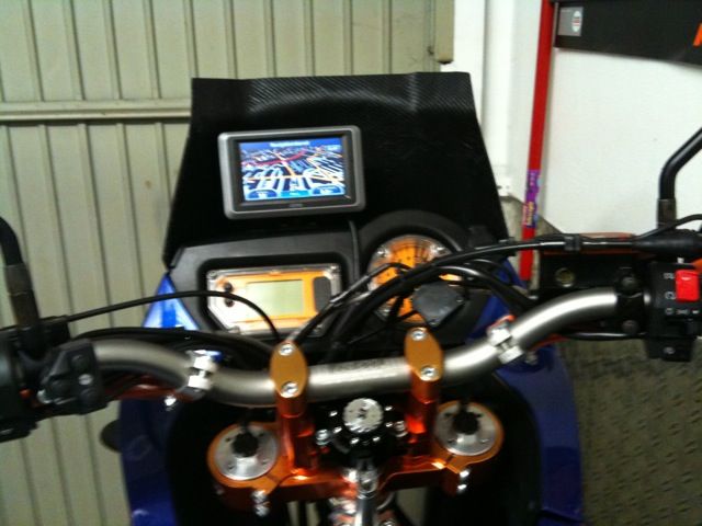 1. habe den Zumo auf der Touratec-Halterung mit dem RamM-System auf der linken Lenkstangenseite montiert und Kabel über die Fronthalterung (Kabelbinder fixiert) zur rechten Lampenseite geführt.