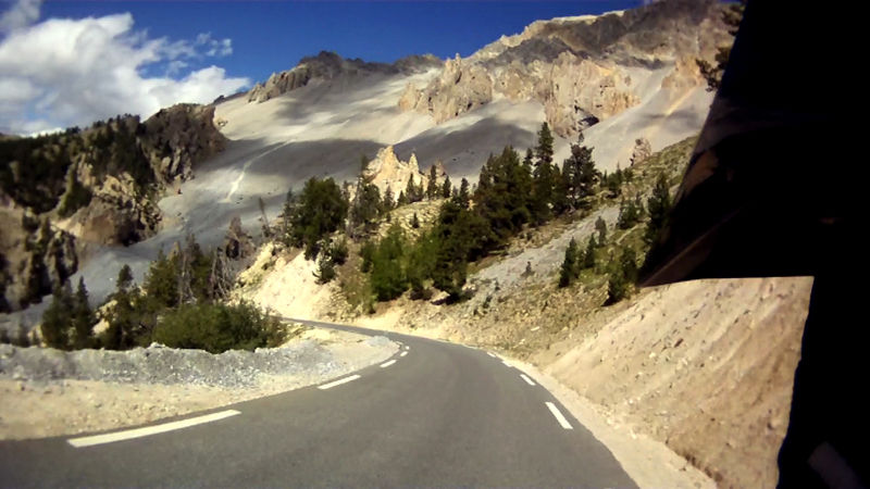 für die sicht nach hinten habe ich zwei dinge ausprobiert. einmal die kamera am helm rückwärts ausgerichtet. zum andern die kamera am alukoffer der bmw montiert -> da die alukoffer aber doch ziemlich vibrieren sind diese aufnahmen doch etwas verwackelt (siehe die aufnahmen, wo man meine ktm im bild sieht). mein fazit nach etlichen versuchen: direkt am motorrad befestigte kamera ermöglich zwar sehr interessante perspektiven wird aber leider immer vibrieren und liefert eher verwackelte/zittrige bilder.