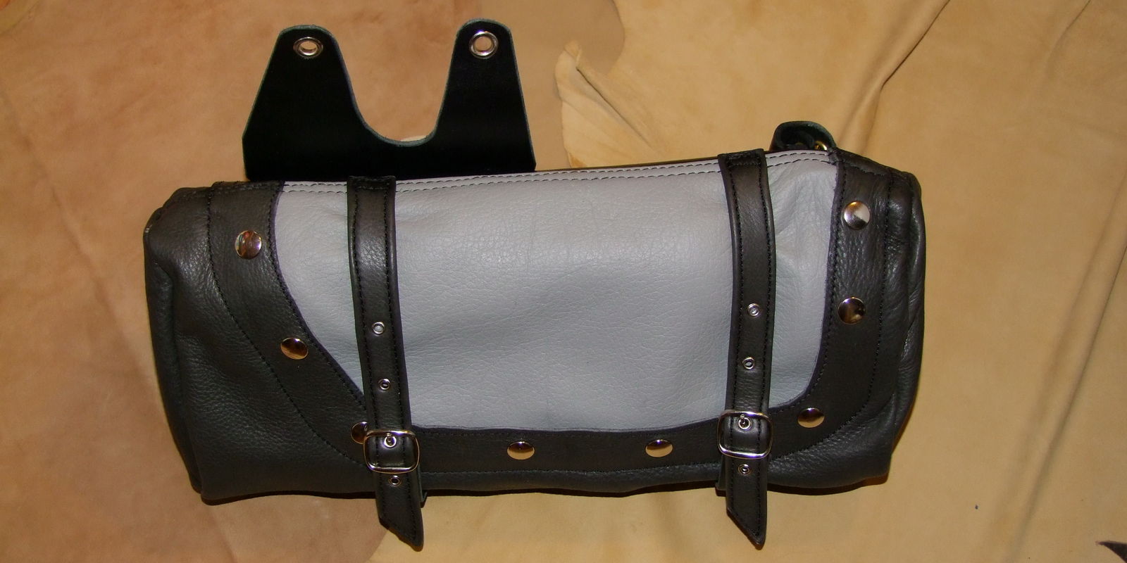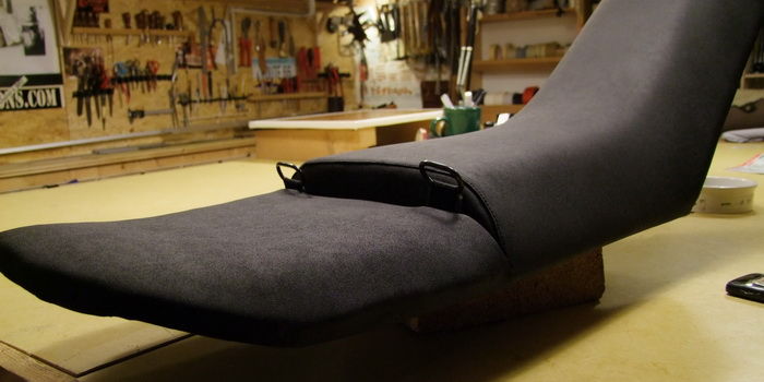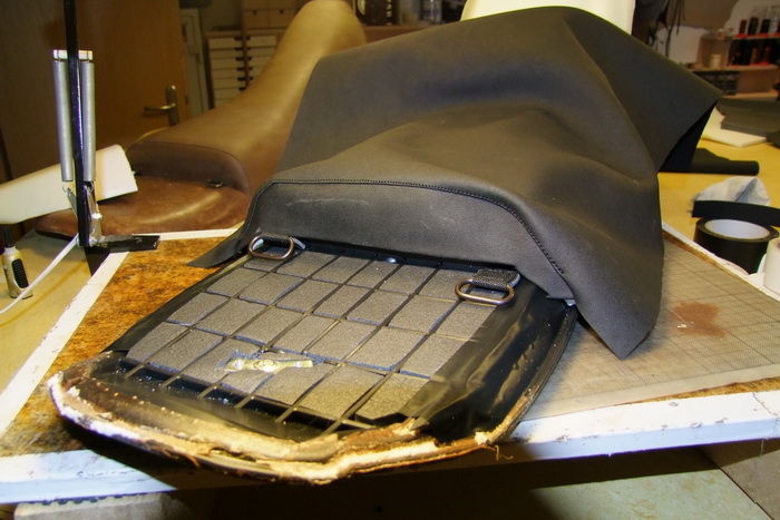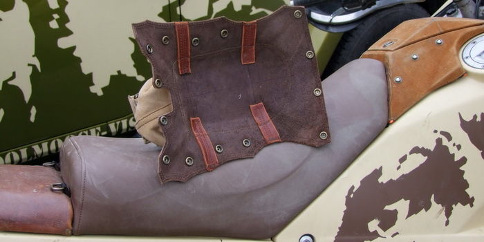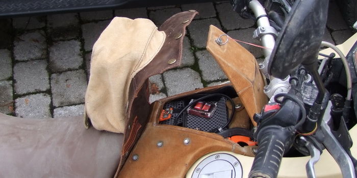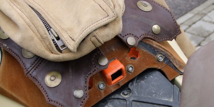 Zusätzlich sind die beiden Taschen miteinander, unterhalb der Sitzbank verbunden. Das Leder (mit den Ösen auf pic 104 + 105) wird dabei mit dem Sitz zusätzlich gegen Wegname blockiert.