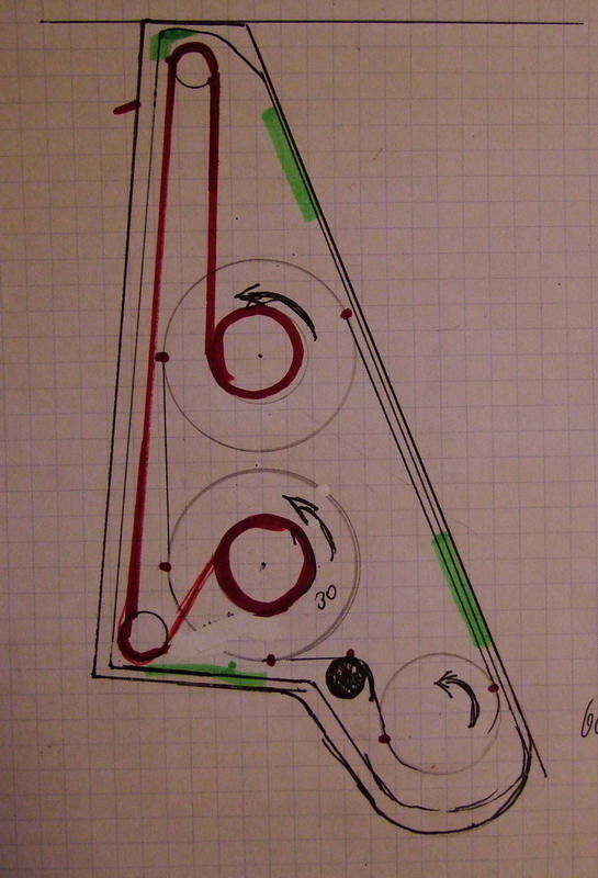 Willst du beide Rollen mit einem Riemen antreiben das funktioniert bei unterschiedlicher Aufrollmenge nicht mehr oder