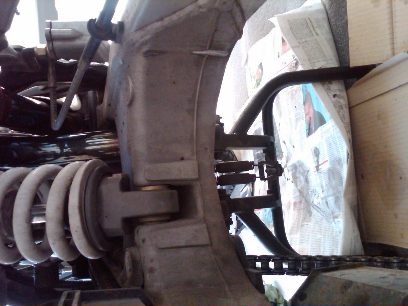 Da meine Schwinge zur Zeit ausgebaut ist , wollte ich nur mal kurz darauf hinweisen das der Plastikspritzschutz ne ziehmliche Rille in meine schwinge gearbeitet hat . Werde dem Spritzschutz jetzt mit ner Flex zu Leibe rücken um ein weiteres einarbeiten in die Schwinge zu vermeiden .