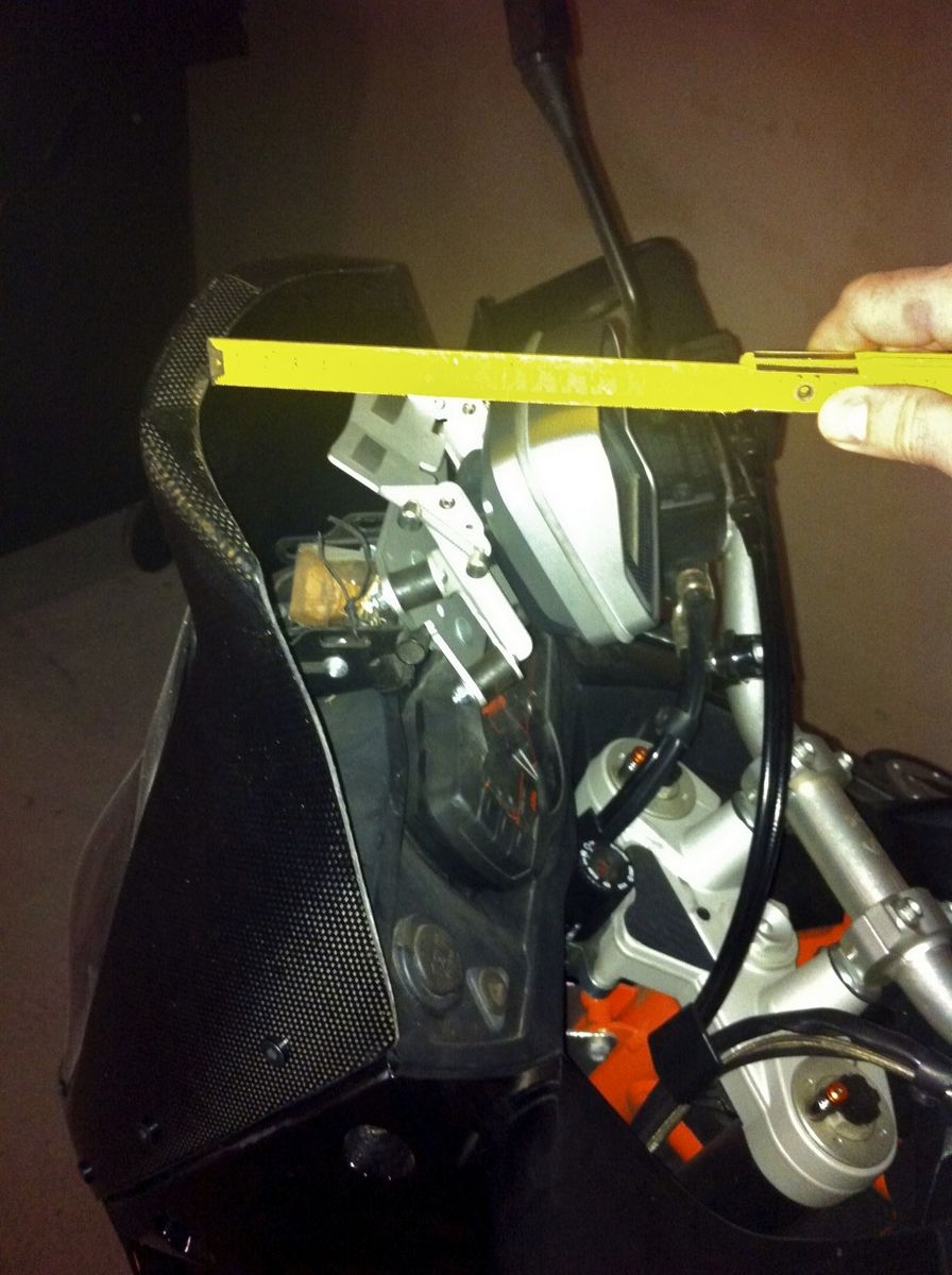 Atzimuth hat doch sein original Windschild nach vorn gekippt und dadurch Platz für die Brotdose gewonnen. Frag ihn doch mal, wie er das umgesetzt hat.