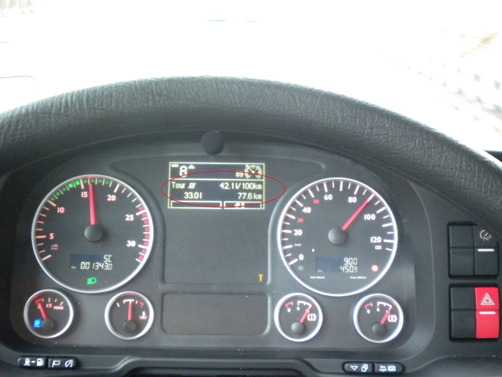 Die Verbrauchsanzeige im Bild ist unbeladen auf der Autobahn. Mad