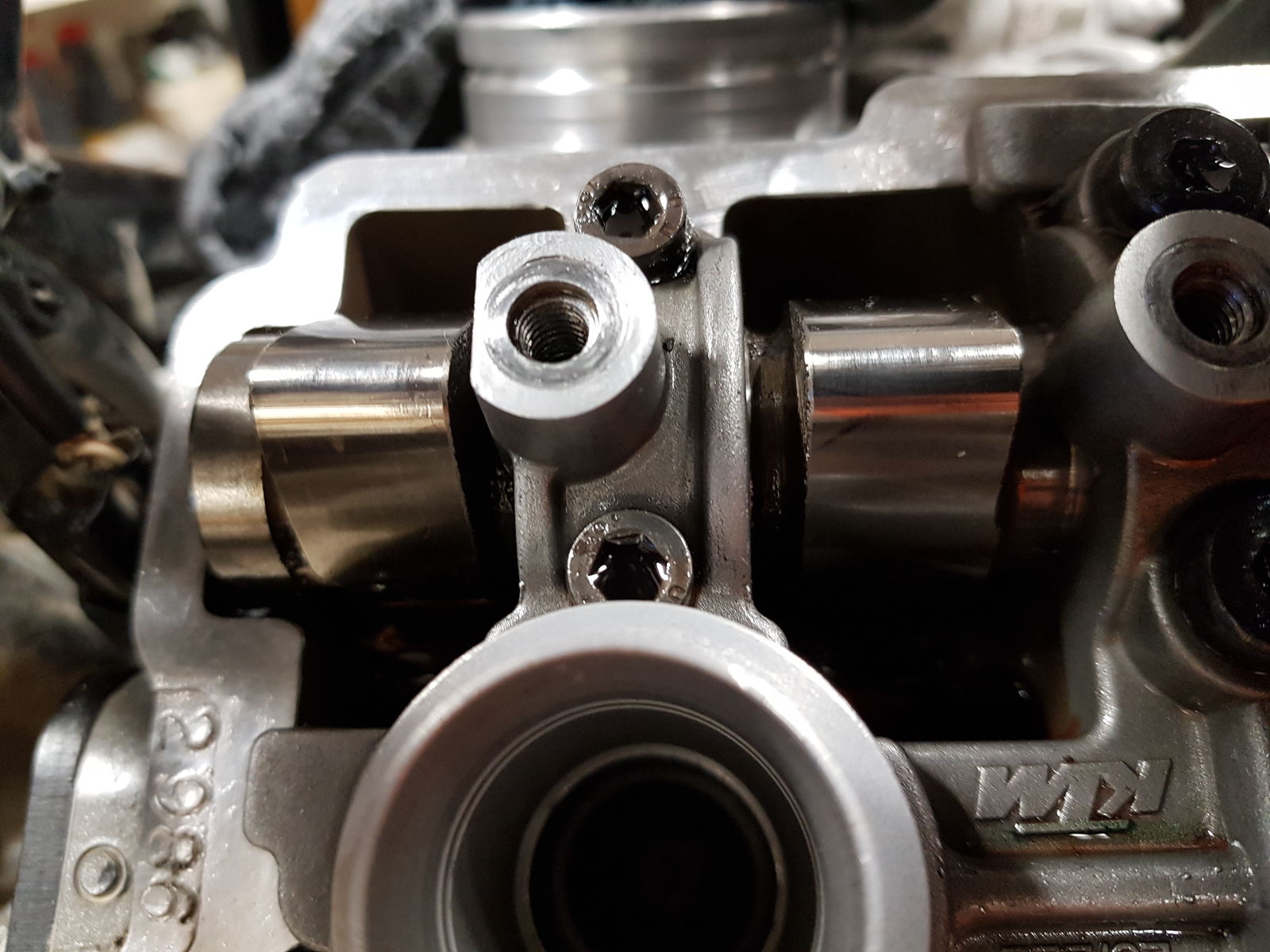 Wir haben damals seitens KTM nie einen nachvollziehbaren, technischen Grund für diese Anpassung der Vorgaben erfahren, auch bei Rückfragen bei Schulungen nicht. Ich persönlich halte mich bei den 950ern immer noch an die ursprünglichen Vorgaben. Insofern würde ich raten, das genannte Einlaßventil - gemessen mit 0,09-0,10 - tatsächlich unbedingt anzupassen. Und die beiden mit 0,12 gemessenen Einlaßventile sind aus meiner Sicht bereits nah an der Einstellgrenze. Der Auslaß mit 0,26 ist noch OK.