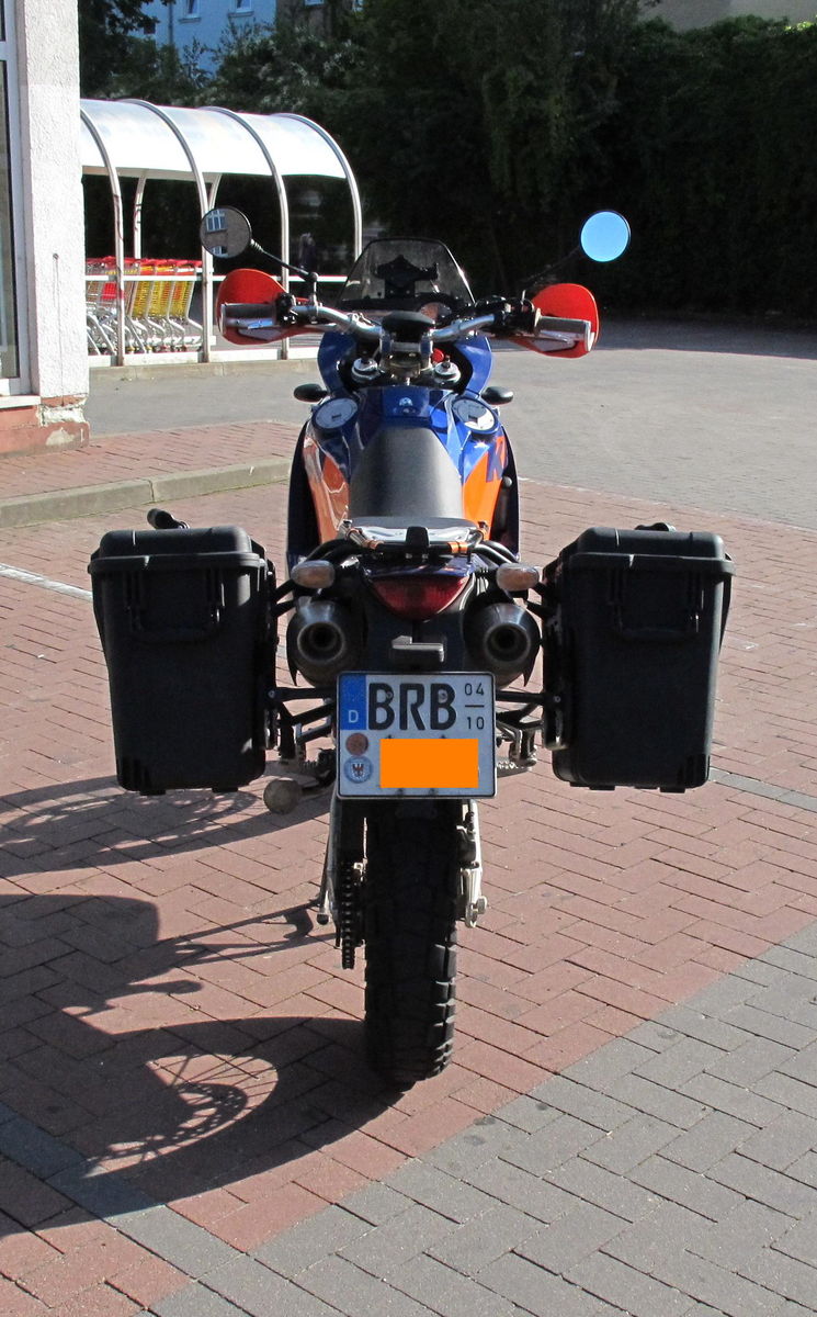 Kofferträger sind von KTM. Die sind völlig sinnloser Weise so schräg gebaut.
