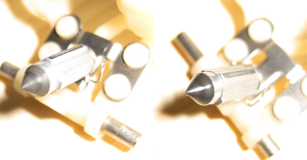 So, hab die Vergaser zerlegt und die beiden Schwimmernadeln ausgebaut. Schaut für mich ganz normal aus. Hab auch noch den Schwimmer ins Wasser getaucht um festzustellen ob er mit Wasser vollläuft. Schwimmer, Membranen und Düsen sind alle ok. Hab Fotos von den Schwimmernadel angehängt. Die schauen doch normal aus oder?