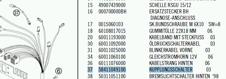 Der Schlater hat noch eine weitere Funktion: Wenn die Kupplung gezogen ist, wird bei der EFI die Drehzahl leicht hochgeregelt. War bei mir der Fall: Motor ging immer aus bei niedrigen Drehzahlen. Ist nervig auf engen Geländestücken usw..