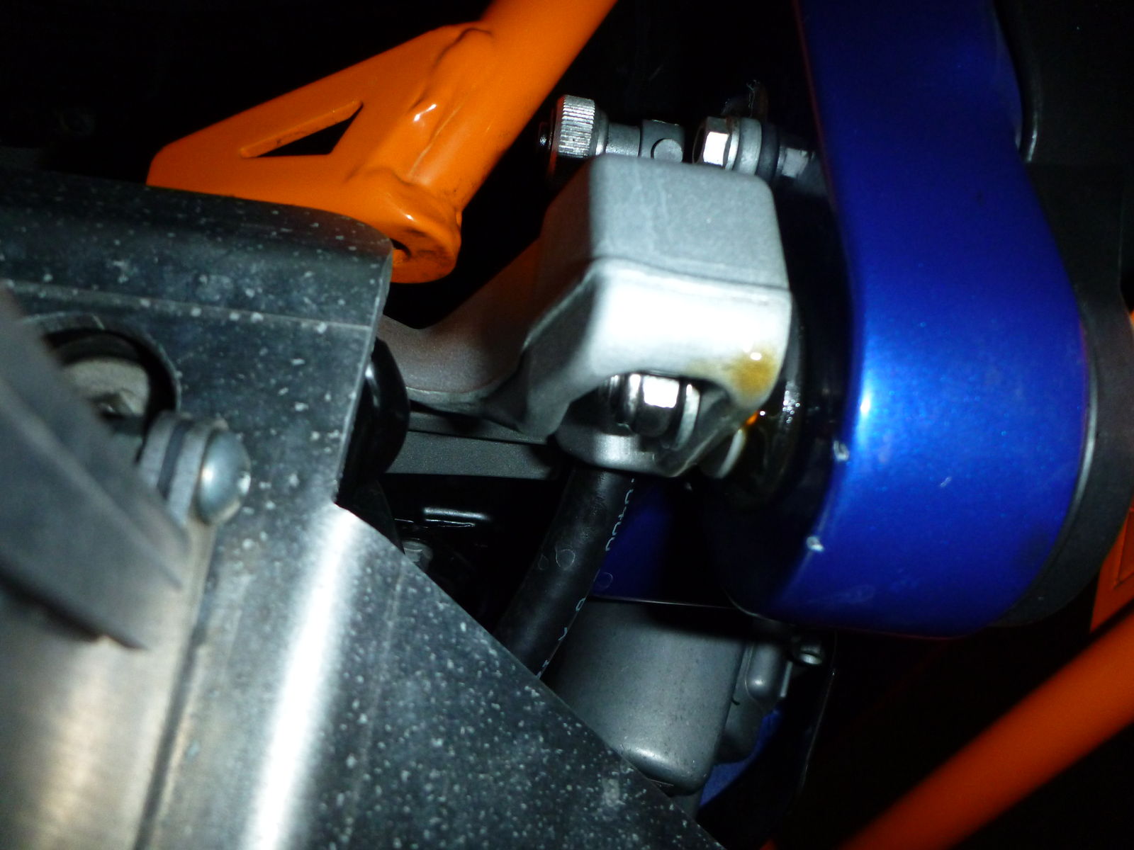 Bin kein Mechaniker, da gibt's einen dicken Schlauch, der nach oben führt, dort, an der Befestigung scheint`s leicht feucht zu sein