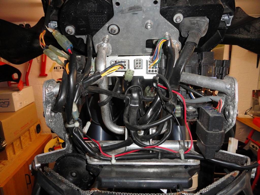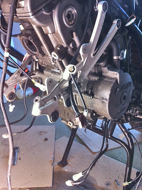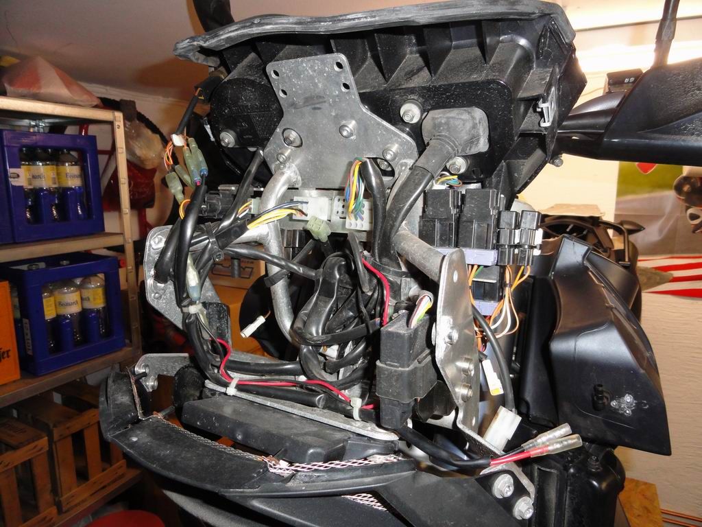 wenn möglich Bilder (rechts und links) vom Motor mit Rahmen bei denen zu erkennen ist, wo die Kabel des Kabelstrangs langlaufen bzw. befestigt sind. Und vielleicht falls jemand ein Bild von vorne (Windschild/Lampe abgebaut) auf die Kabelführung hat.