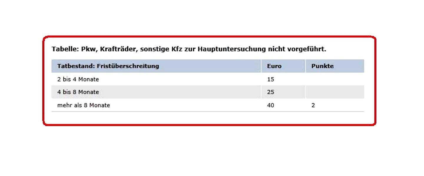 Und wie siehts dann mit dt. Fahrzeugen aus, die im Ausland sind und daher den TUV ueberzogen haben - sind dann auch immer 20% mehr faellig? Und sind fuer 4 Monate ueberzogen dann 40% mehr faellig?