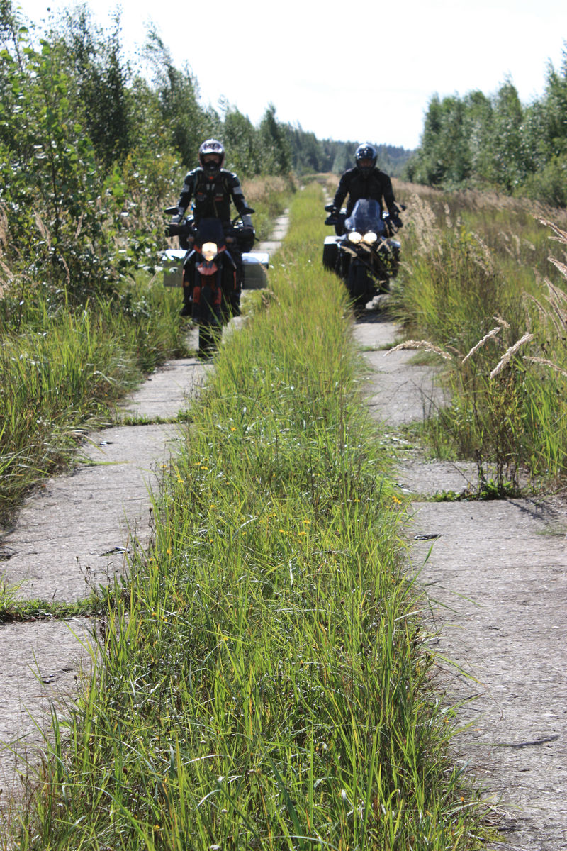 Das Ziel Gschimmy Hill vor Augen nahmen wir Ziel auf Estland. Aber langsam: kleinste Sträßchen, Schotterstraßen und Feldwege. Auf einem solchen fuhr mir Heinz mal so richtig schön in die Karre als ich anhielt, gut war auch das Paul versetzt neben mir angehalten hatte – und so spielten die beiden Domino Day – nur ich blieb stehen *hehe