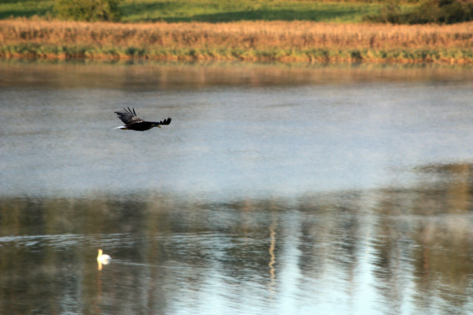 ...Am nächsten Morgen stand Nebel über der kleinen Ostseebucht und Raureif war am Boden. Von einem Felsen aus konnte ich einen Seeadler beobachten. Manche sagen vielleicht kitsch-Idylle, ich fand’s fantastisch...