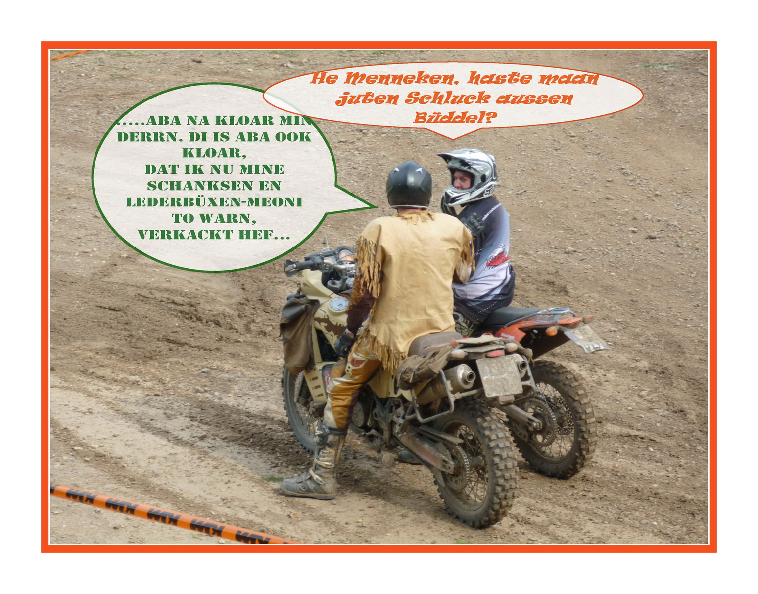 die Fahrer haben sich zu Tode geschwitzt, 3 Stunden Cross, mit kleinen Enduroeinlagen, im Team,das geht an die Substanz..