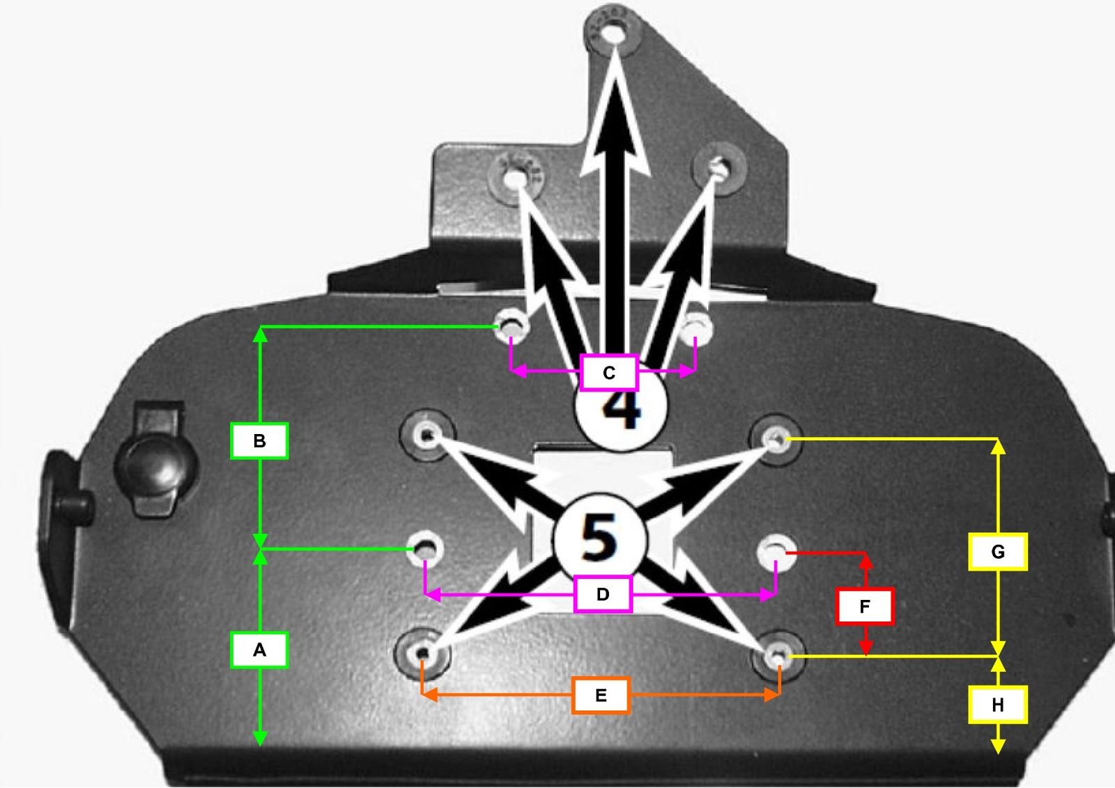 Am wichtigsten wäre MAß A und H. Die anderen Maße könnte ich "zur Not" auch selber heraus messen.