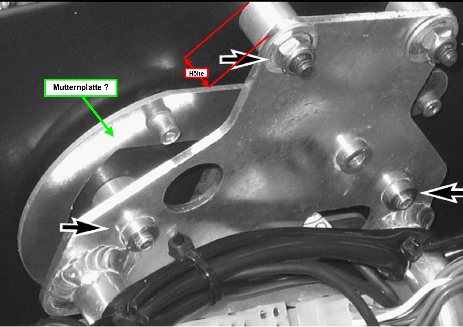 Kann mit jemand vielleicht die Maße nennen die ich in den unten aufgeführten Bildern eingezeichnet habe ? Das würde mich ein erhebliches Stück weiterbringen. Eventuell wäre auch ein Bild dieser in der Montageanleitung genannten "Mutternplatte" mit der Roadbookhalter am Halteblech befestigt wird sehr hilfreich.