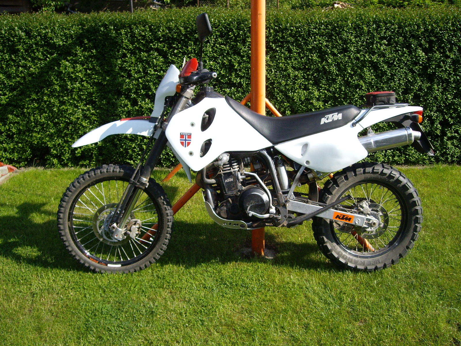 620 Supercompetition mit exc Endrohr und 145kg Trockengewicht. War mir aber immer noch zu schwer fürs Gelände und zu leicht für lange Touren. Von den Vibrationen mal ganz abgesehen! Drum steht auf dem Stellpaltz die LC8 und demnächst noch ne Husquvarna TC 450. Wollte ne EXC, aber da zahlt man für eine 7 Jahre alte Möhre immer noch den halben Neupreis. Die Husky ist 3 und kostet nicht ganz die Hälfte.