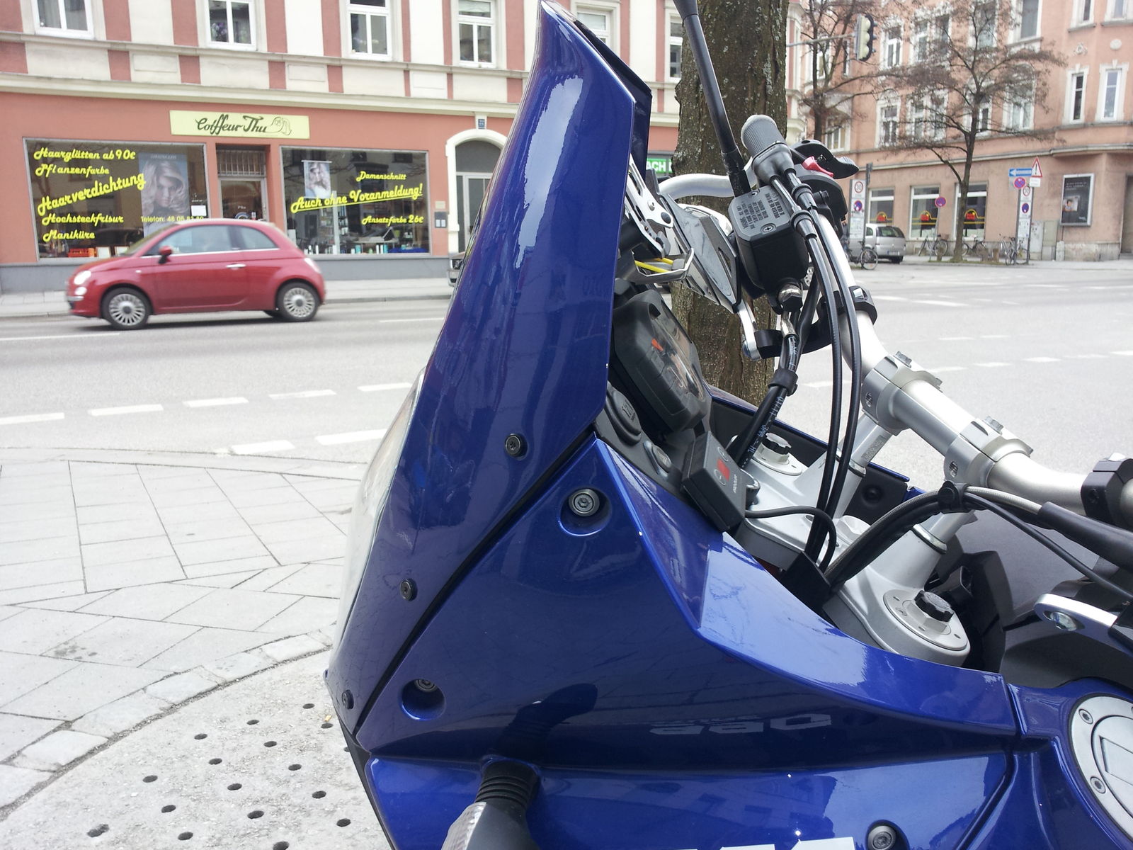 Eigentlich wollte ich ja nur mein neues Ralley Raid Schild ein bisschen blau machen lassen. Der Lackierer sagte mir, das das 2011 Dakar blau ein spezieller Farbton wäre, den man eigentlich nur über RH Lacke geziehen kann.