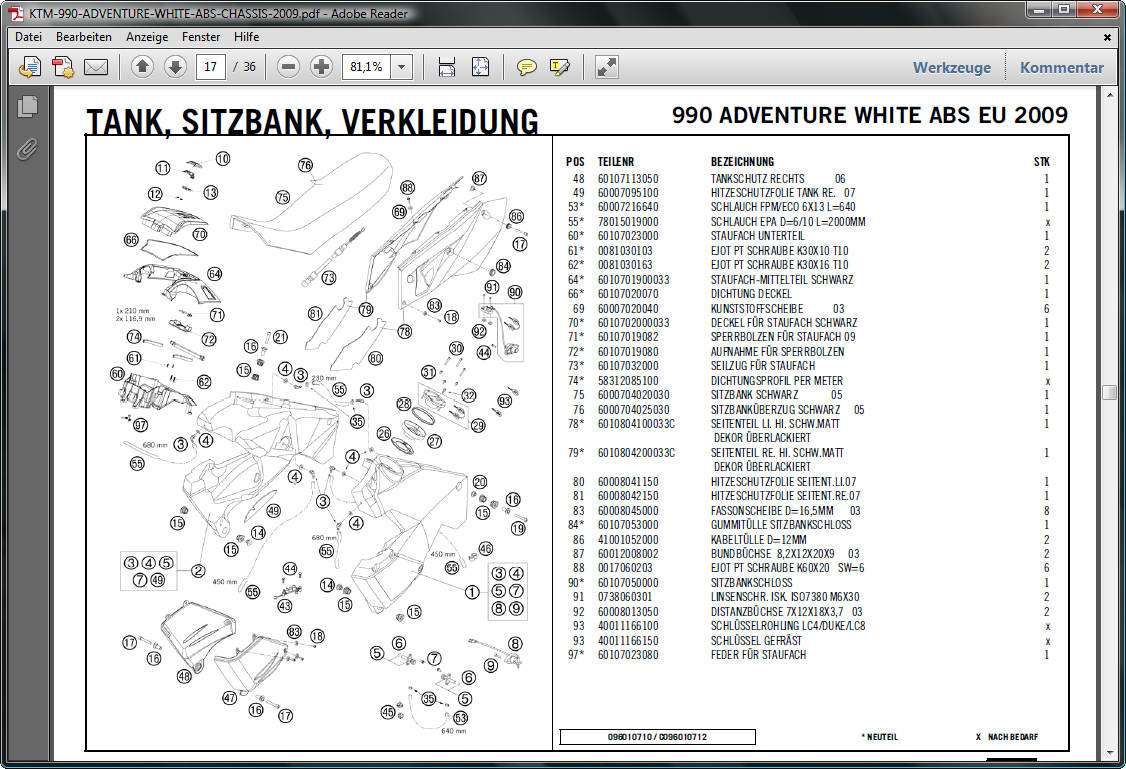 Nein, keine Nachrüstarbeit. Die Überlaufschläuche Nr.55, die rad_thom meinte, gab es schon immer bei der 950er
