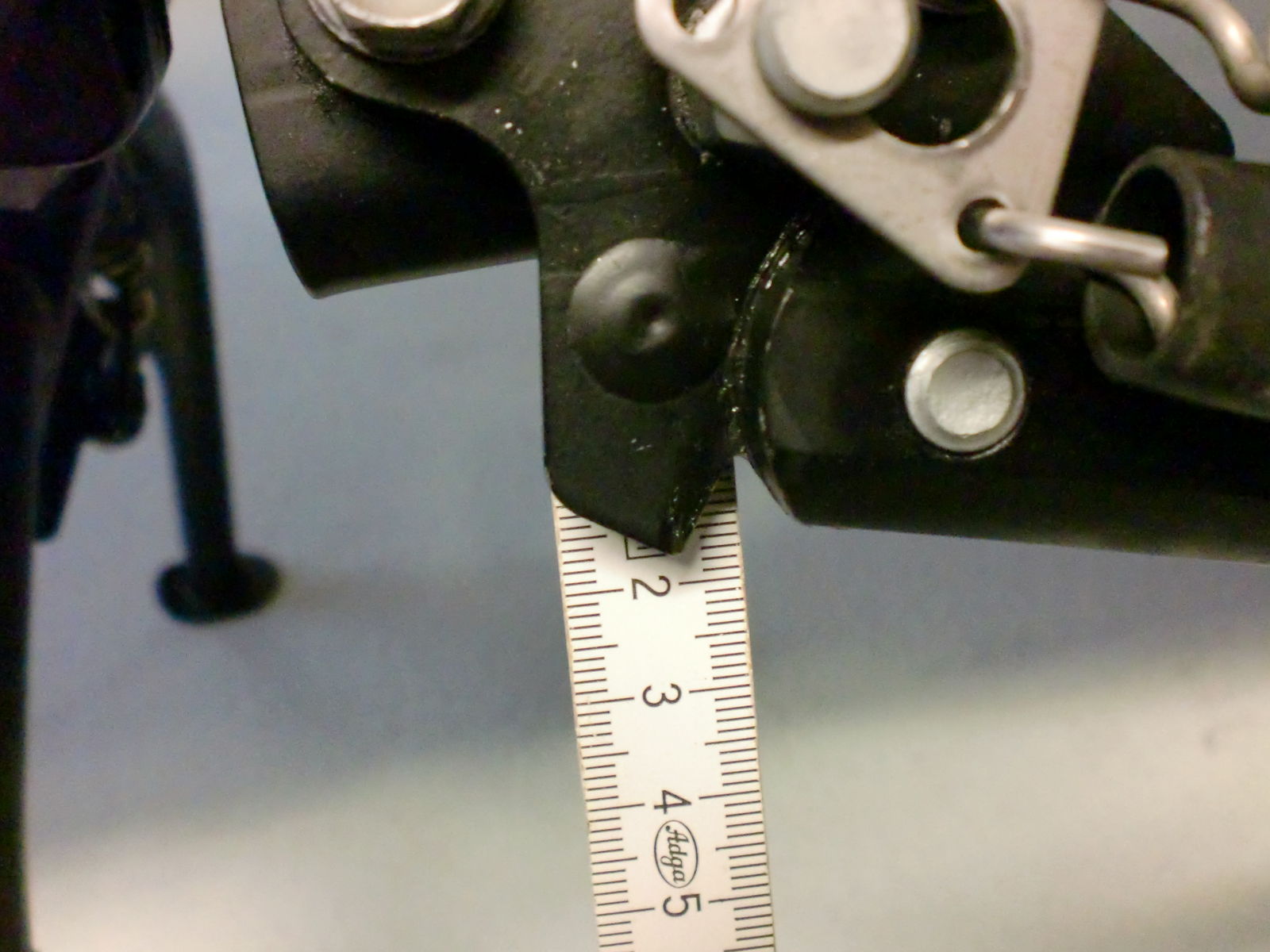 Ich war mal eben in der Garage zum messen: Vom unteren Zipfel Platte bis Mitte des Bolzens ist 20mm.