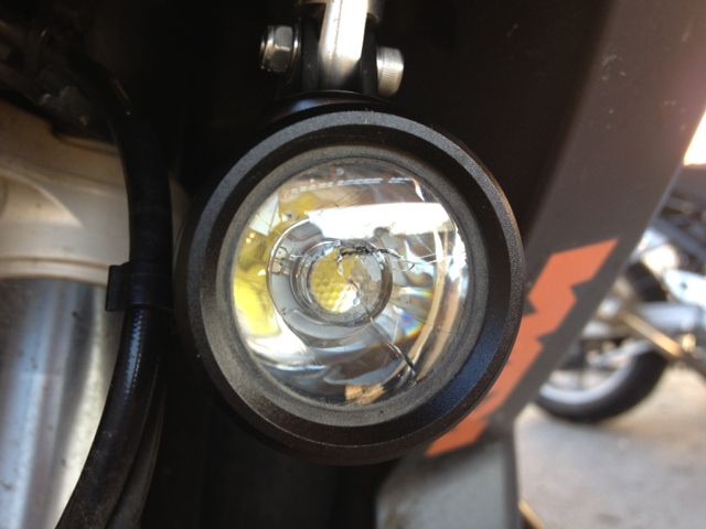 Ich habe mir die KTM Zusatzscheinwerfer für meine Adventure montiert, nach der ersten Ausfahrt war ein Scheinwerferglas gesprungen.