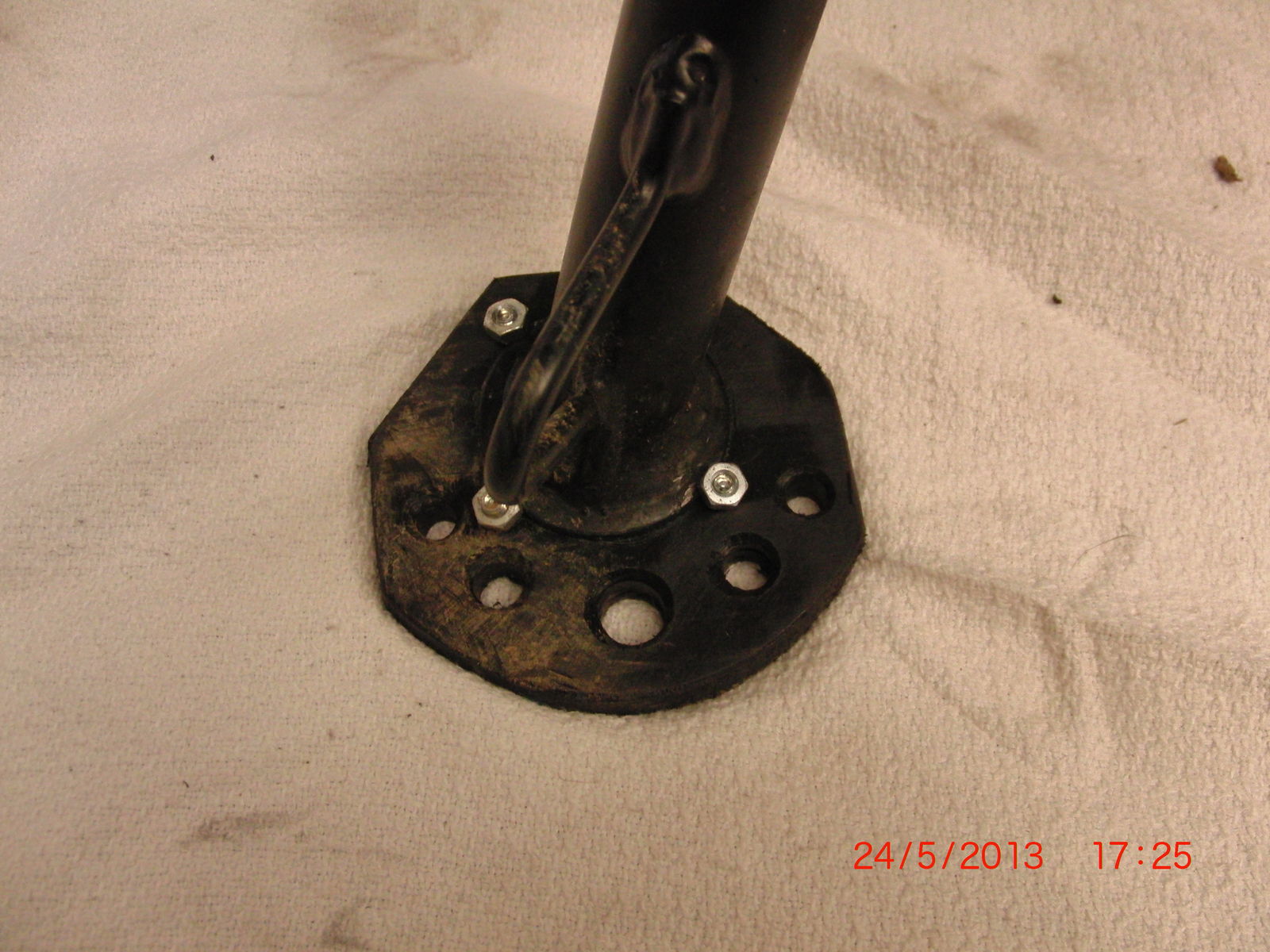 angeschweißt. Sie steht jetzt nicht mehr so steil und auf weichem Rasen