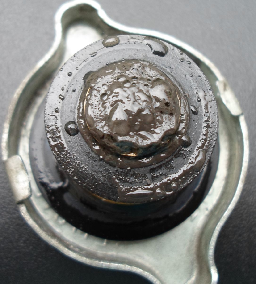 Kann es sein dass der Deckel nicht mehr richtig abgedichtet hat und so evtl. das Kühlwasser lokal aufkochen konnte und somit der graue Schleim entstand?