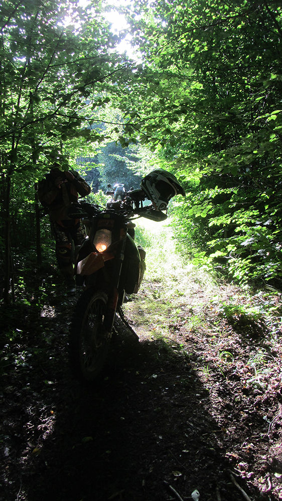 Der Offroadanteil unserer Tour war doch beachtlich, von den insgesamt gut 3000km würde ich sagen waren es bestimmt 2/3 jenseits des Asphalts. Lustig war dabei der Unterschied zwischen Hassows Garminkarten und (m)einer Android/OSM Routen. Garmin scheint die deutlich älteren Kartenvorlagen zu benutzen. Teilweise wurden Verbindungsstraßen angegeben, über die bestimmt seit Jahrzehnten kein Auto mehr gefahren ist, so zugewuchert wie die 'Wege' waren. Oder eben auch die abgerissene Brücke (sah sehr nach Kriegszerstörung aus), die Android/OSM kannte. Auf der anderen Seite war es gerade in den weniger touristischen Gebieten mit OSM ziemlich mau, teilweise kannte OSM ganze Orte nicht. Da war Garmin ganz klar die bessere Alternative. Aber wenn das Kartenmaterial halbwegs gut 'aufgelöst ist', dann ist das Routen als 'schneller Fußgänger' die Entdeckung der Tour....Der schnelle Fußgänger will nur die schönsten Wald/Feldwege nehmen, was ja nicht das schlechteste ist.