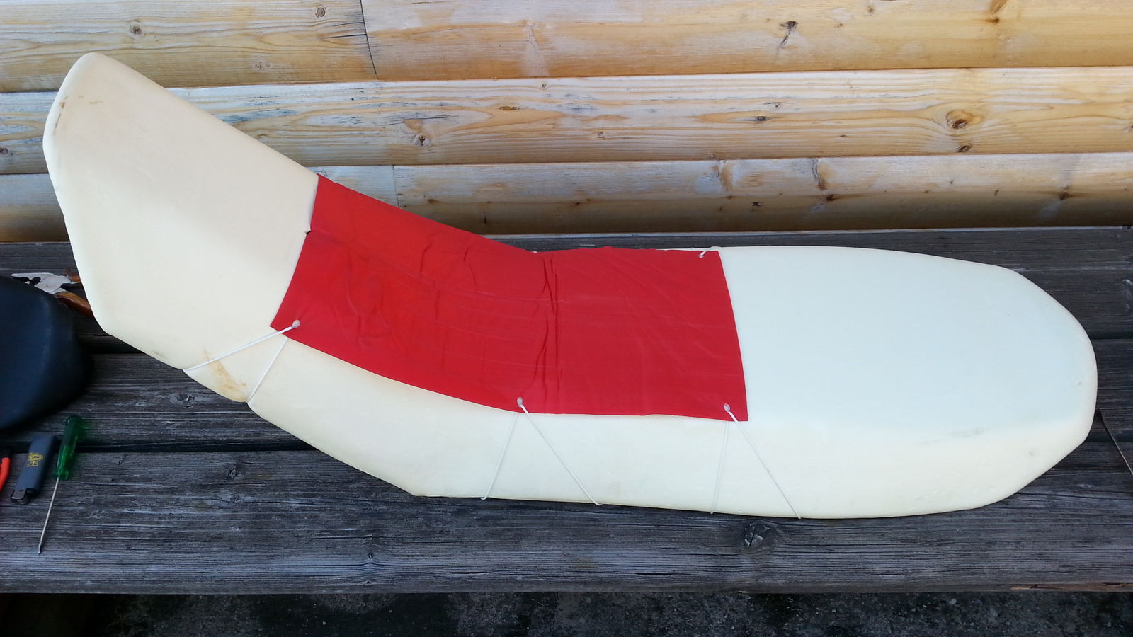 Ideal wäre noch eine Filzmatte als Einlage zwischen Matte und Sitzbezug. Hatte aber kein so ein Ding zu Hause.