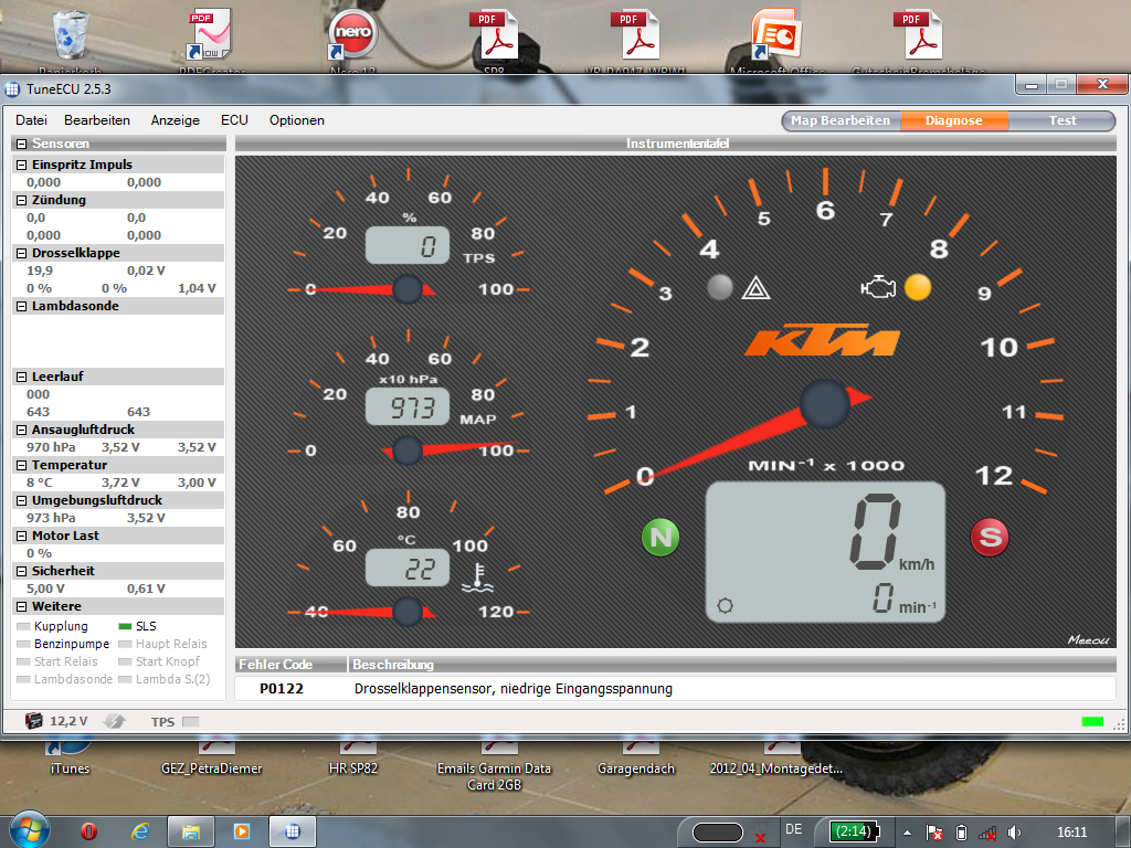 auch diesen Fehlercode. Den habe ich dann geöscht und habe dann das Mopet genau 15min ohne gasgeben laufen lassen.Die Zeit sollte genau eingehalten werde.