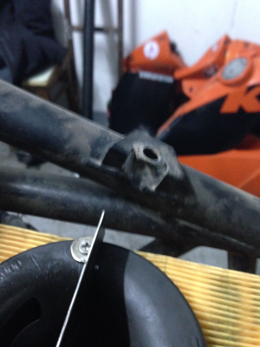 Und am Rahmen ist die angeschweisste Mutter fuers Handschuhfach wech. Jemand eine Idee - ausser anschweissen? |
