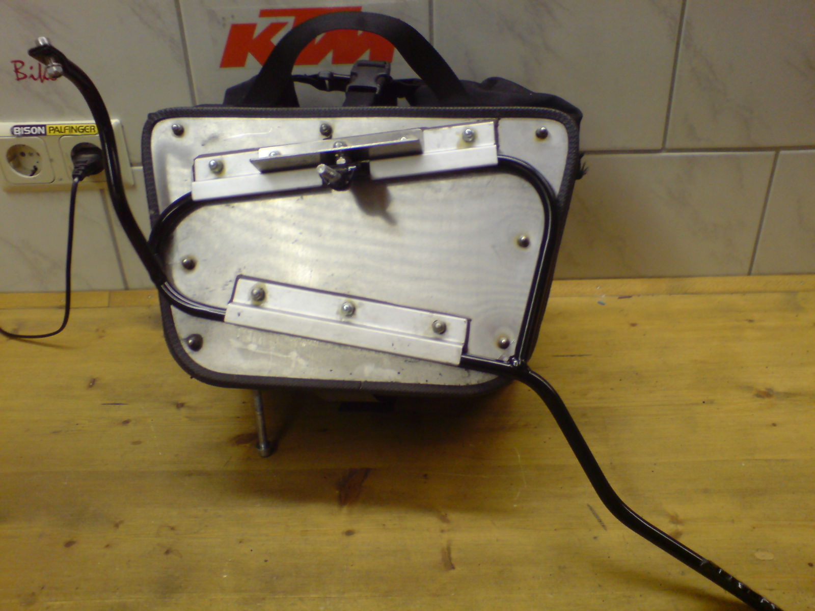 2007 hab ich an meine alten Ortlieb-Taschen eine Aluplatte mit 2 Z-Profilen