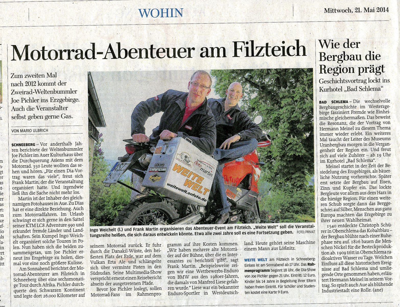 26.10.2014, 17:00 Uhr, Joe Pichler, 300.000km Abenteuer pur, Baldauf-Villa, 09496 Marienberg