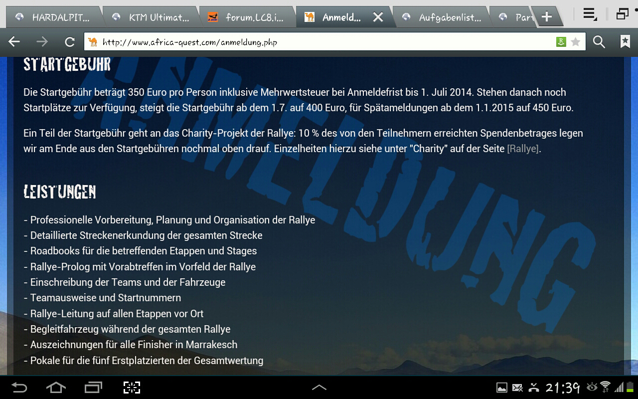 350 startgebühr , 400 € spende und 100 für den tracker als miete plus 100 kaution.