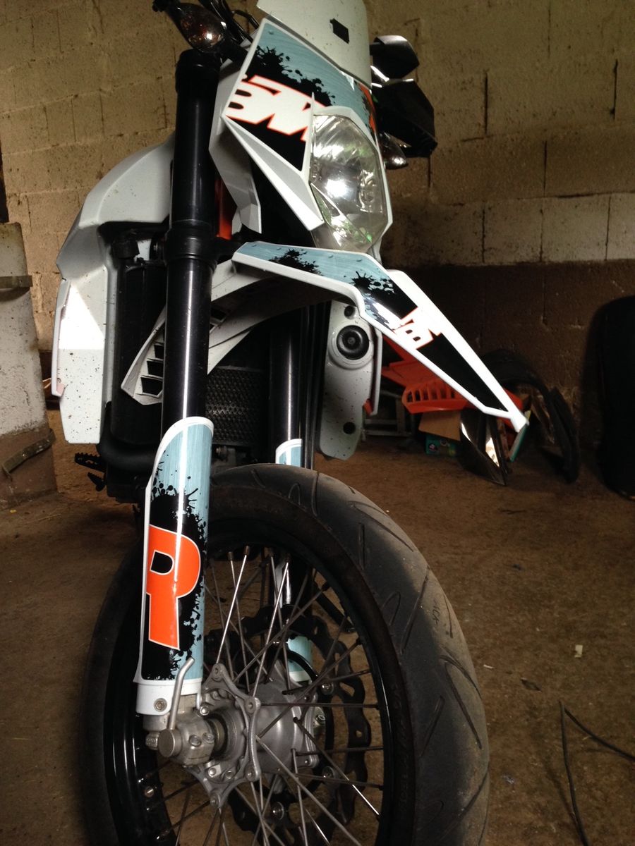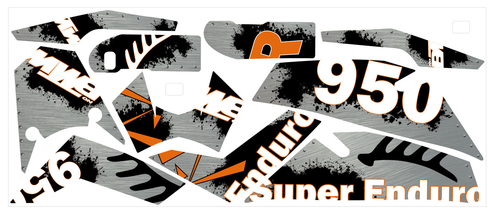 Nachdem ich stundenlang das Web durchsucht habe und außer den bekannten, fertig käuflichen aber nicht gewünschten Produkten gelandet bin, kontaktierte ich den einzigen DE-Anbieter mit Dekorsätzen für KTM 2 Zylinder Modellen.