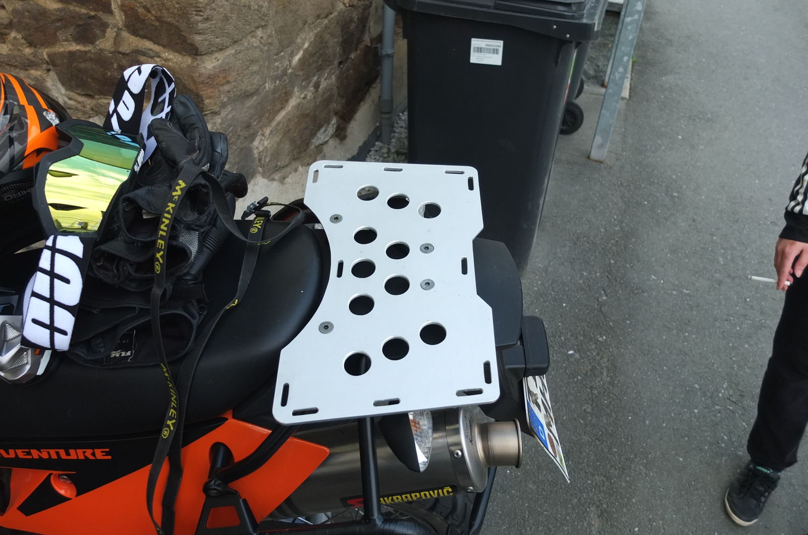 Die Böhrungen passen genau auf die 4 Schrauben der originalen Gepäckbrücke.
