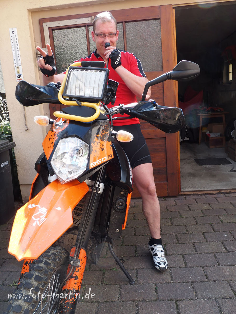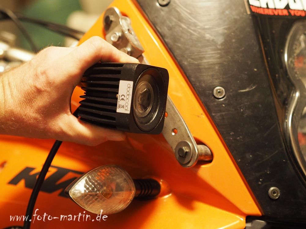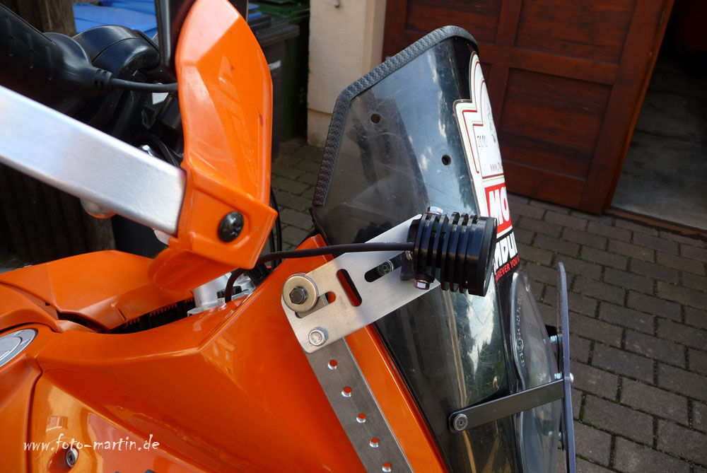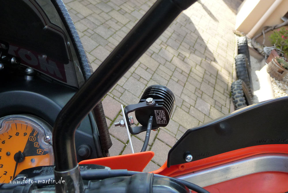 Deshalb habe ich meine stark nach unten justiert. Sie leuchten nun den Bereich unmittelbar vor dem Bike aus. Eigentlich habe ich die Leuchtkörper hauptsächlich montiert, um besser durch den Gegenverkehr wahrgenommen zu werden.......das paßt 100%ig Mr. Green Wink !