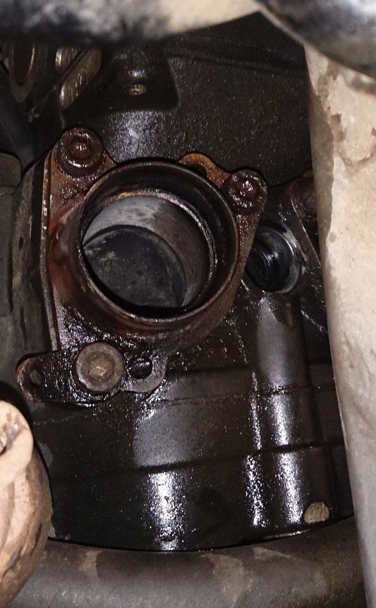 Es kommt aus einen Langloch im Zylinder, zwischen den Krümmeraufnahmen, welches seinen Verschluss verloren hat.