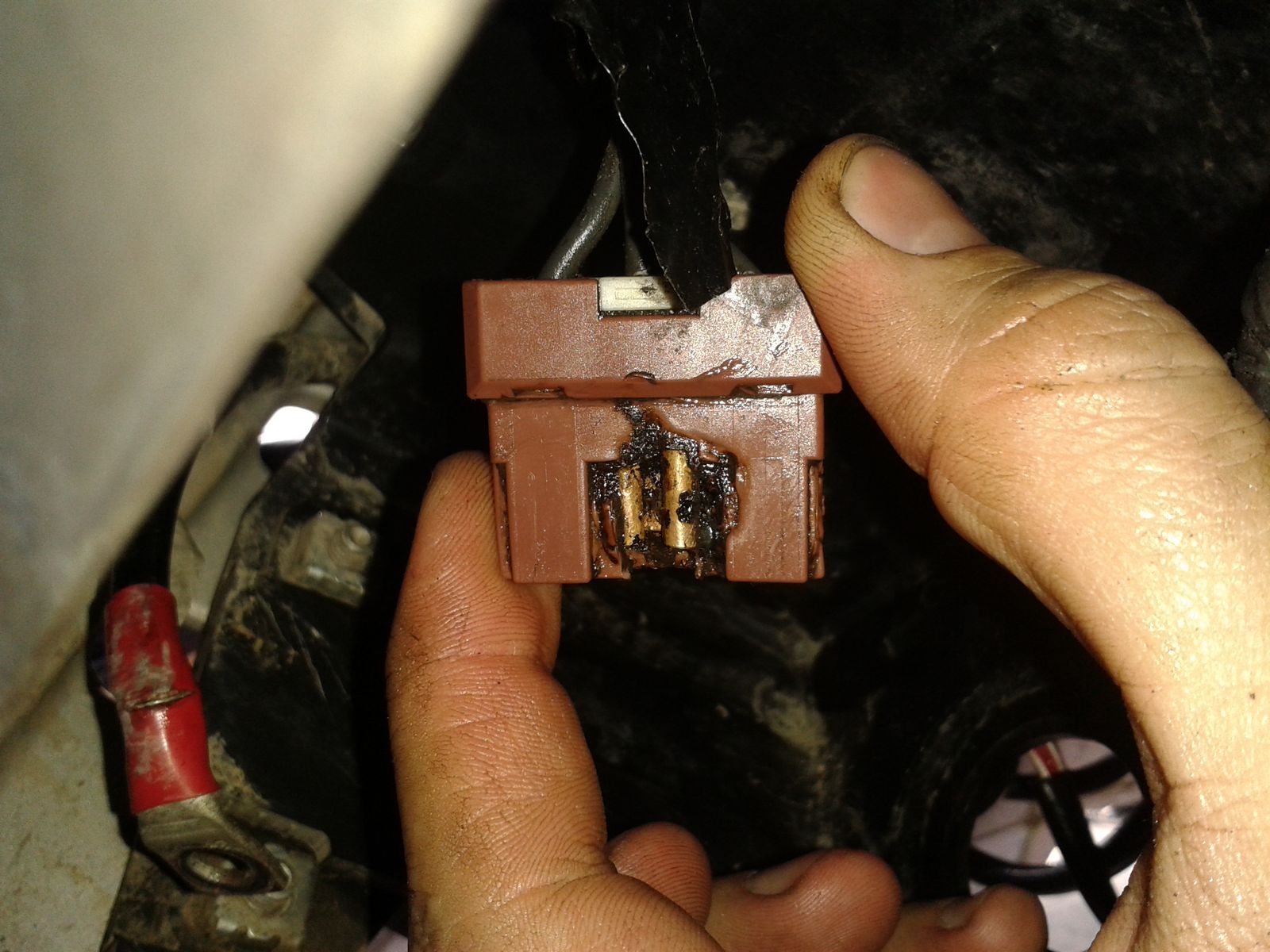 Der breite braune Stecker der von der Lima kommt ging extrem schwer auseinander. Den Grund kann man auf dem Bilder erkennen: der Stecker war angeschmort blink