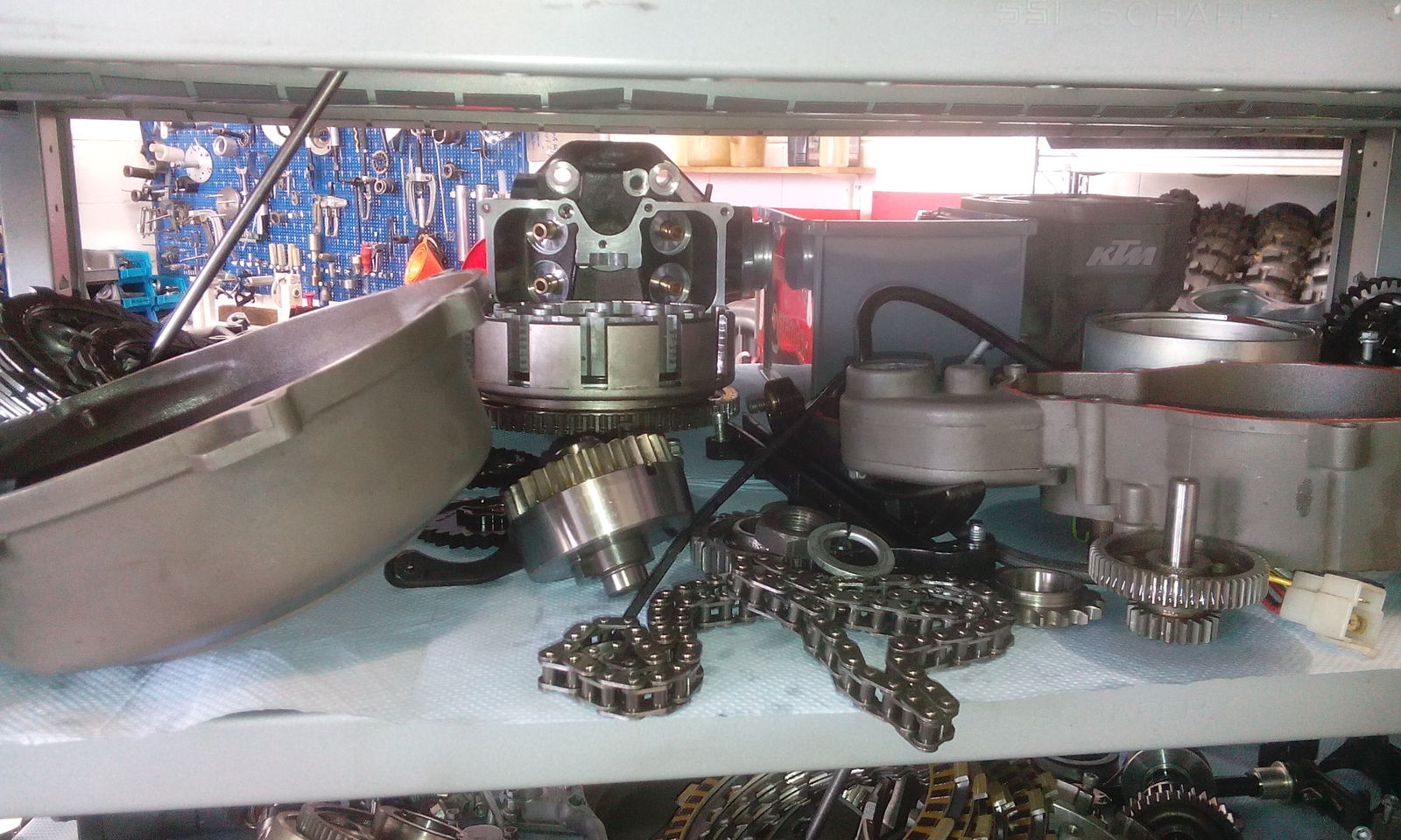 Einige Teile wie Rahmen, USD-Gabel, Federbein, Schwinge, Rahmenheck, Tank+ Kühler hab ich schon zusammen gesammelt. Doch so eine Mopete einzeln zusammen zu kaufen wird mir zu teuer. Darum hab ich mir als Basis erst mal einen Guten Motor gekauft der jetzt von meinem Dealer gerade auf meine Bedürfnisse Umgebaut wird.