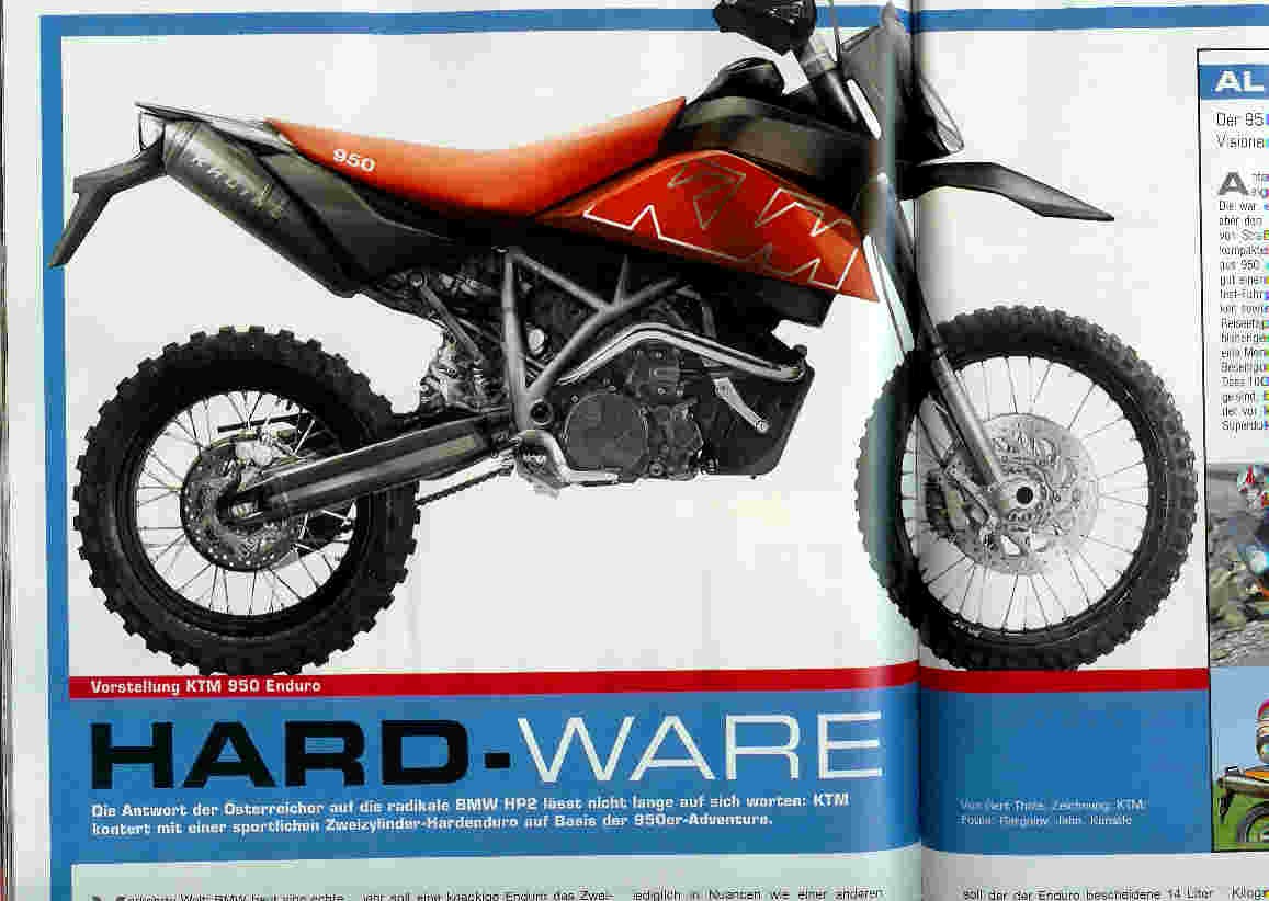 Dazu gehört auch eine KTM 950 Enduro als Antwort auch die HP2.