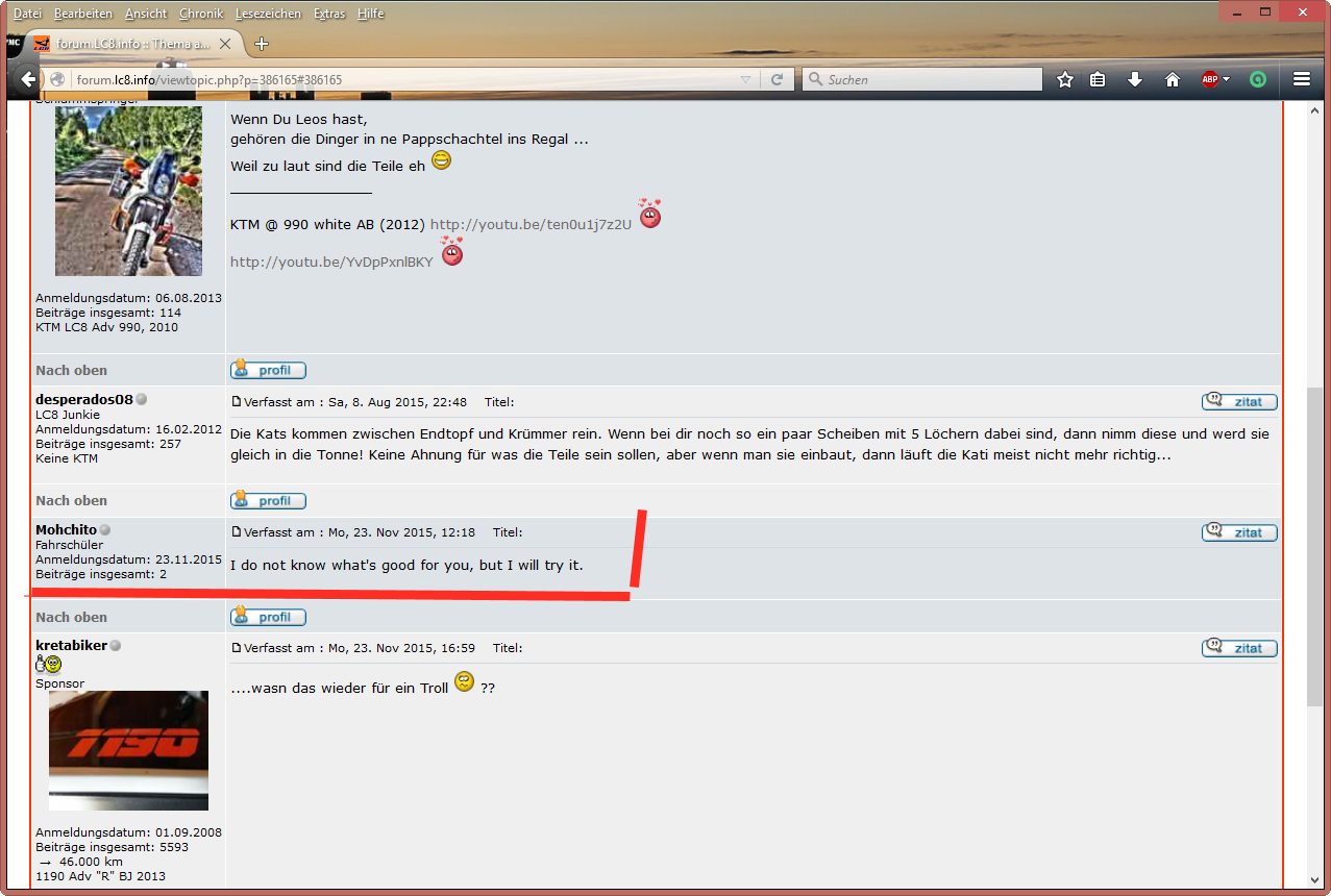 Anmeldungsdatum: 03.08.2008 Beiträge insgesamt: 1105 KTM 1190 R Adventure → 31.000 km