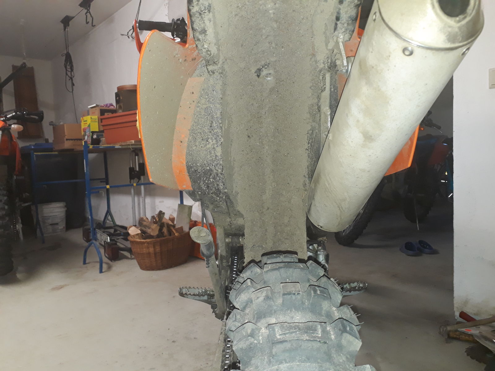 2. Ist der sehr geringe Abstand zwischen Pott u Reifen "normal" bei den EXC Modellen?
