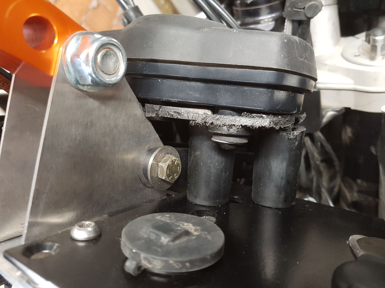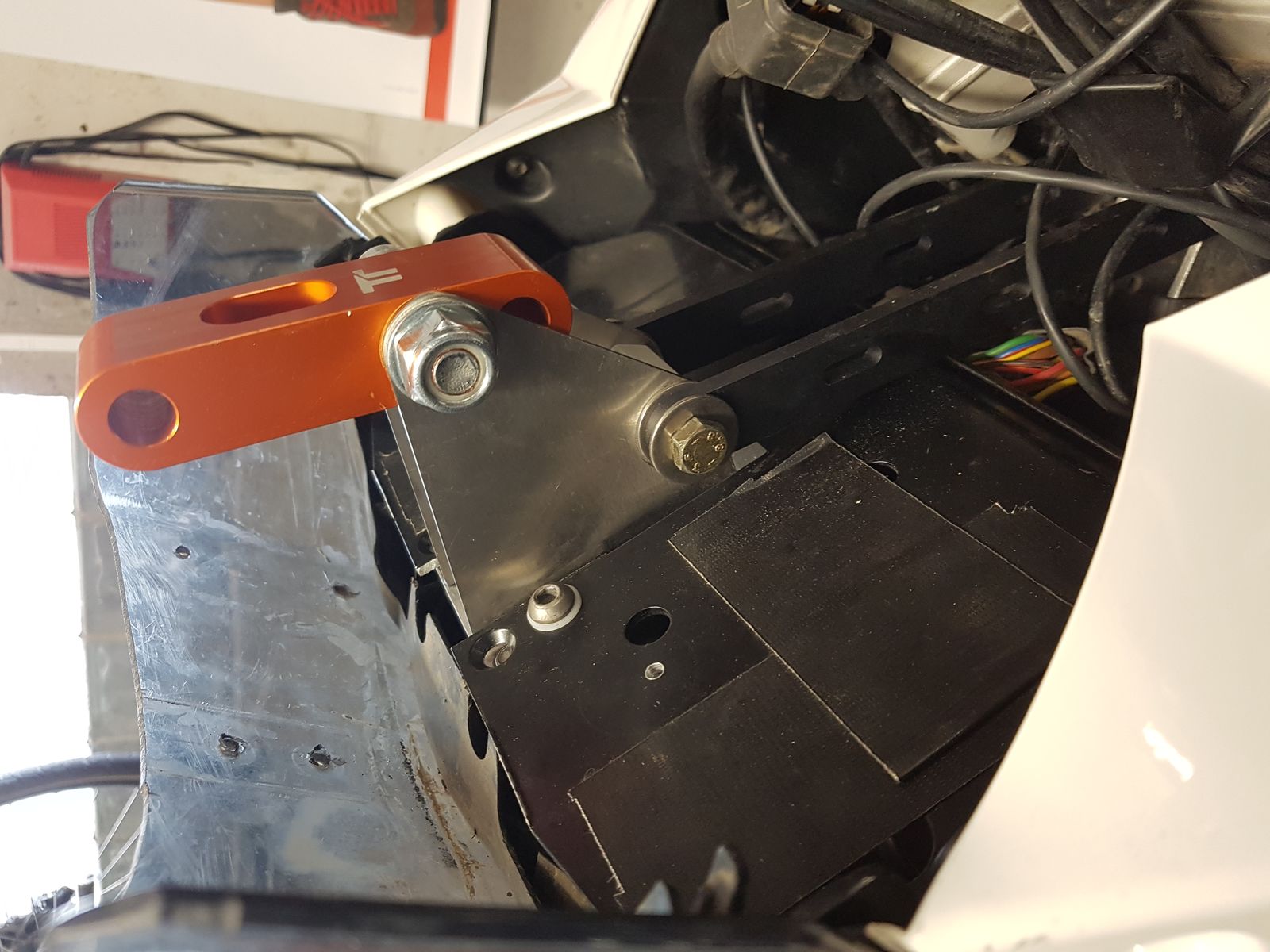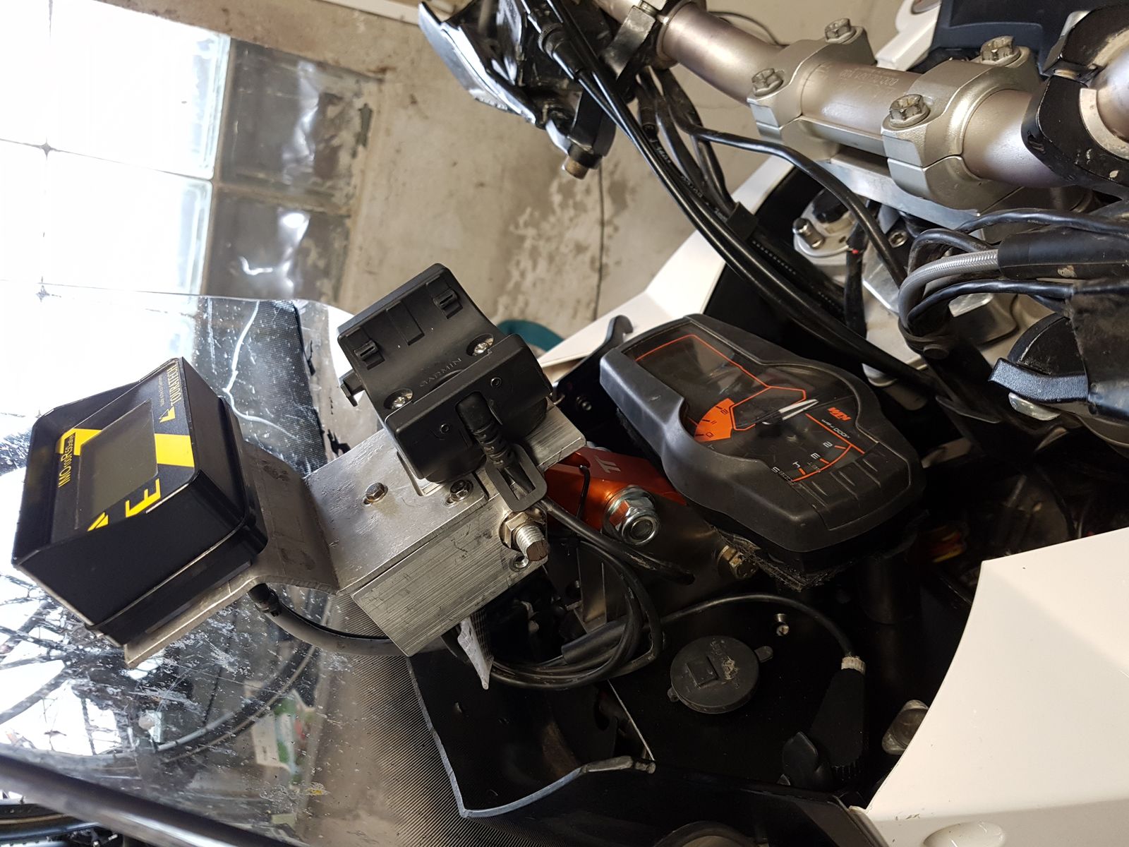 Günstiger weise konnte ich meine vorhandene Grundplatte für den Touratech Tripmaster und die Roadbook/GPS Grundplatte zügig an den orangen Arm befestigen.