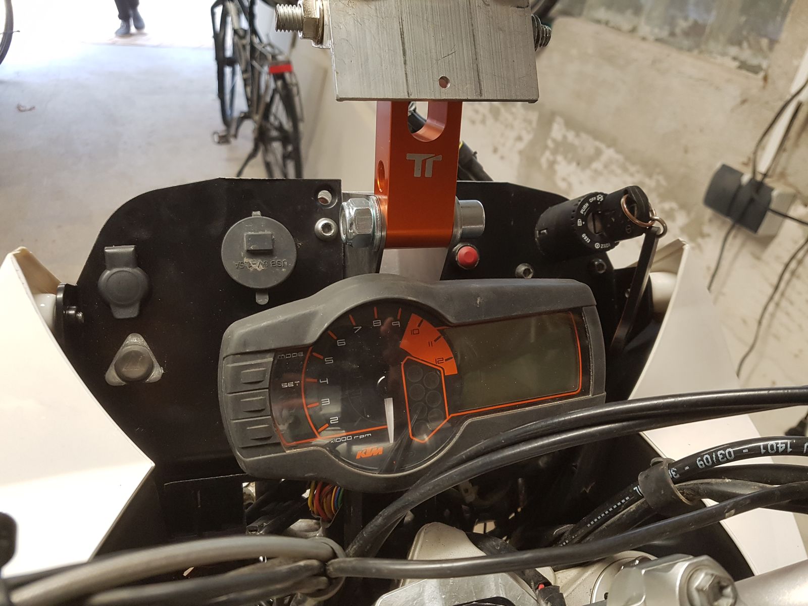 Jetzt musste nur noch eine Platz für den Originaltacho gefunden werden. So richtig wollte nix passen da ständig der Lenker/die Kabel dagegen stießen.
