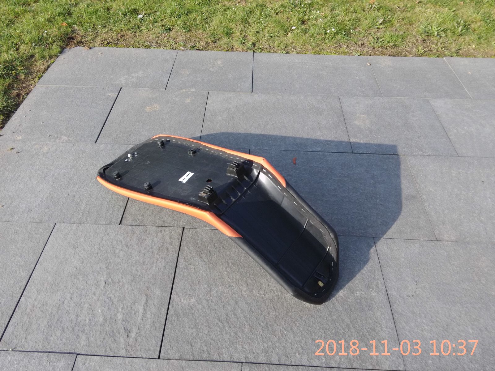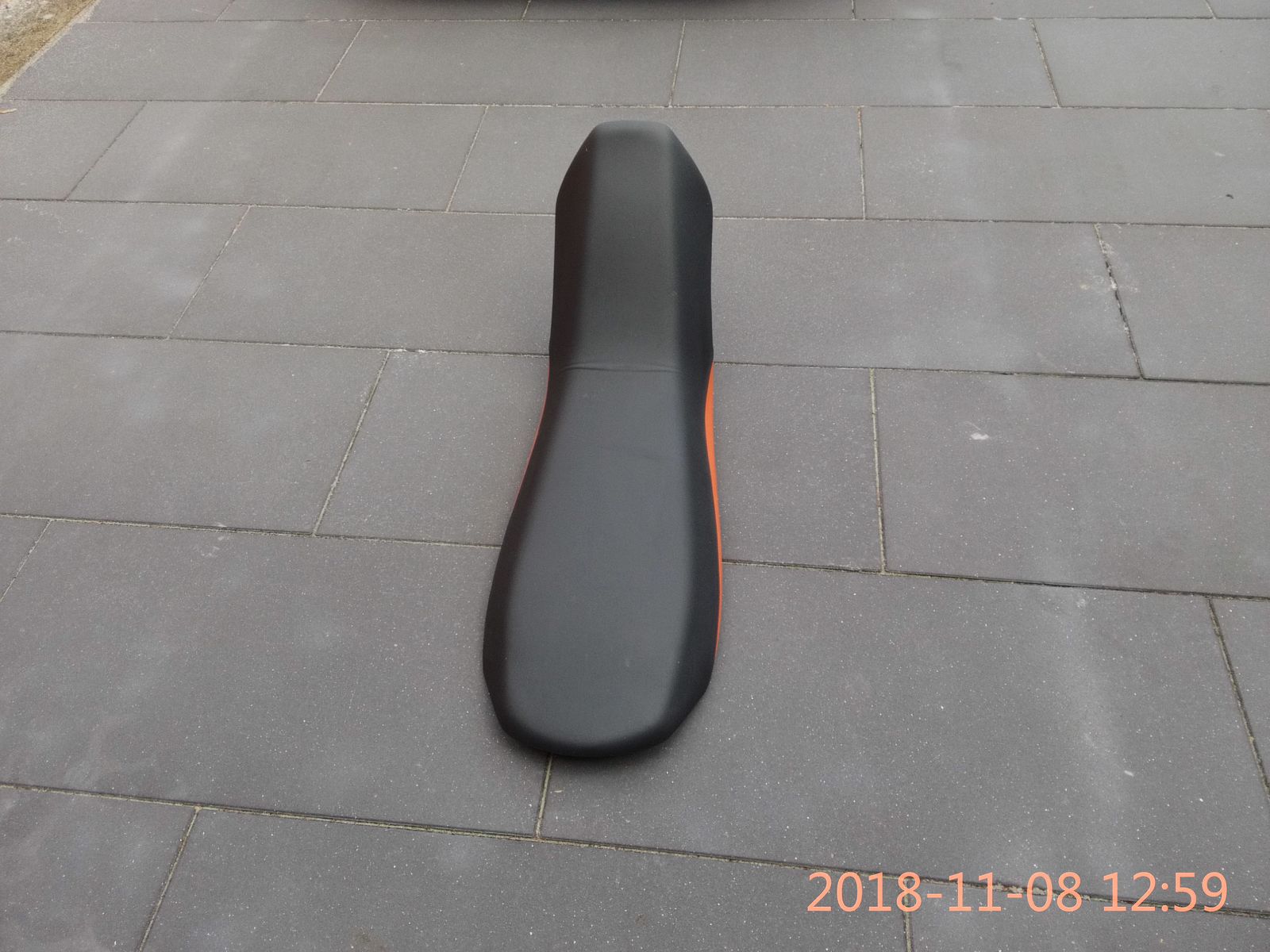 die angebliche 990ADV-S aus 2009 ist tatsächlich eine 990ADV-R, wie sie von 2009 bis 2012 gebaut wurde. Diese gerade Sitzbank in schwarz-orange ist die Seriensitzbank der "R" mit der Teilenummer 6000704000004B. Die paßt problemlos auch auf Deine ´08er Adventure. Im Grunde ist das immer noch dieselbe Form wie seit der 950ADV-S aus 2003, also etwas nach vorne abfallend und schmal. Ideal für sportlicheres Fahren, nicht ideal für die Sozia. Der verwendete Schaum ist härter als derjenige der Stufensitzbank.